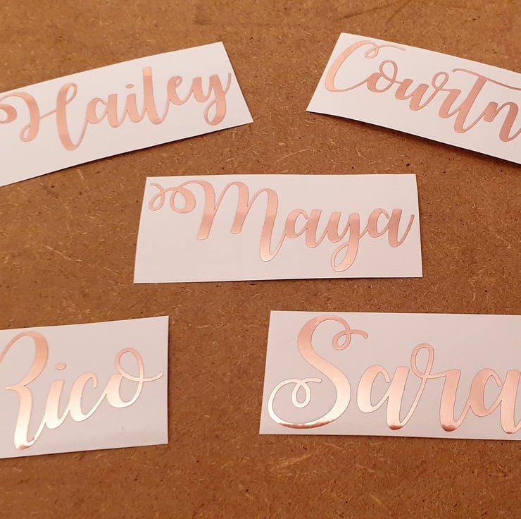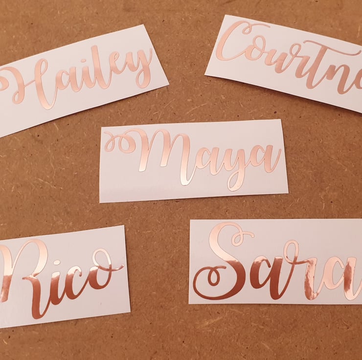 Beautiful personalised rose gold stickers suitable for many occasions such as Weddings, Christenings, Birthdays, Hen Do etc. and for personalising items around the house. Also perfect for Bottles, Boxes, Glasses, Water Bottles and more.