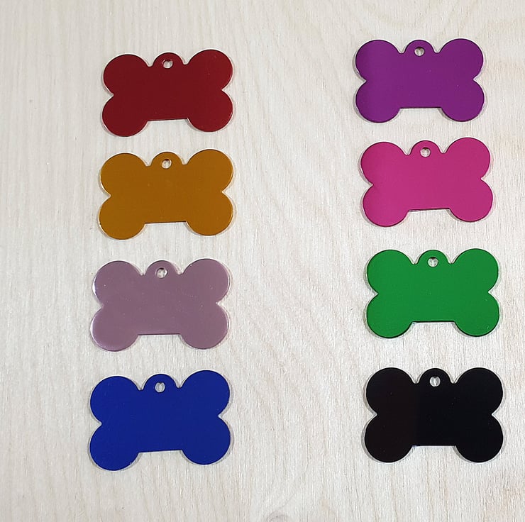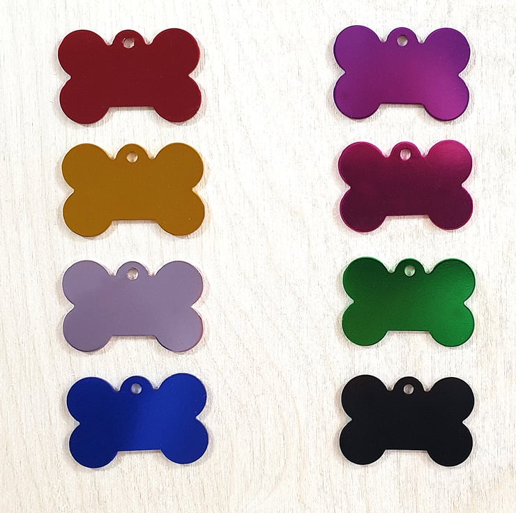 Beautiful personalised metal Dog Cat ID tags. We have 8 wonderful colours to choose from. We can personalise the tags with key information such as Pet Name, Contact Details, "I'm Chipped" etc. Please provide the details during checkout.