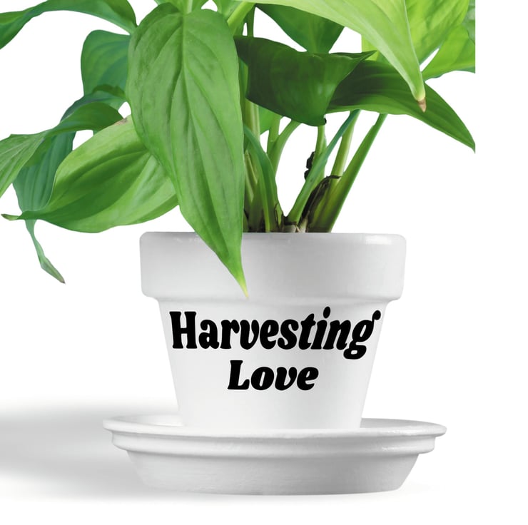 Harvesting Love - Plant Pot Sticker. The perfect way to spruce up a boring plain plant pot. You can even add this to a gift for that extra something special. Spread a positive message. 2 Fonts and a range of colours available.