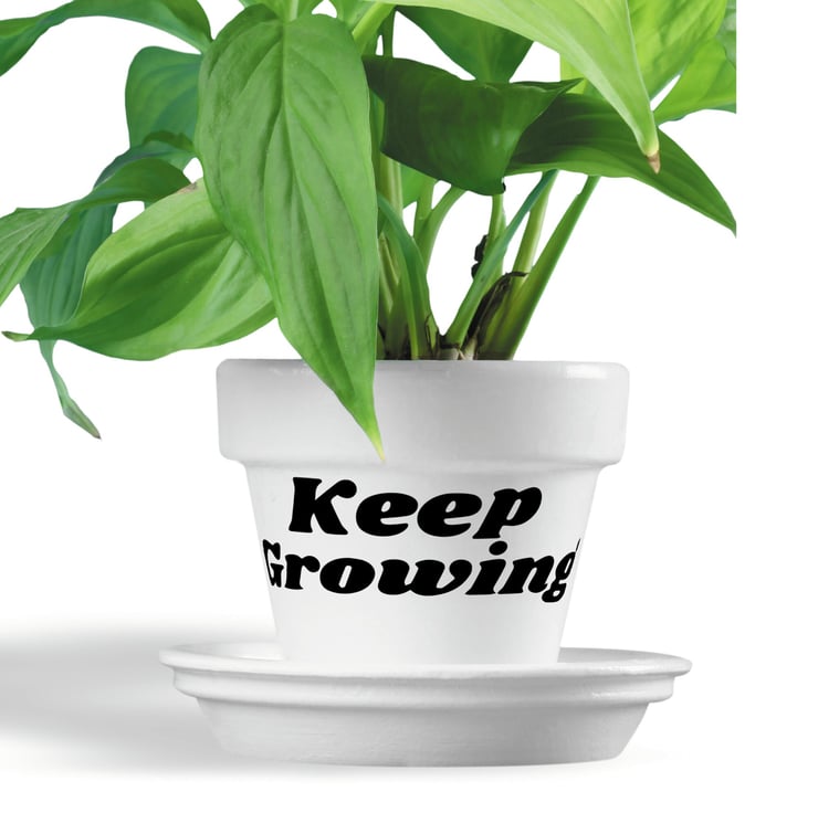 Keep Growing - Plant Pot Sticker. The perfect way to spruce up a boring plain plant pot. You can even add this to a gift for that extra something special. Spread a positive message. 2 Fonts and a range of colours available.