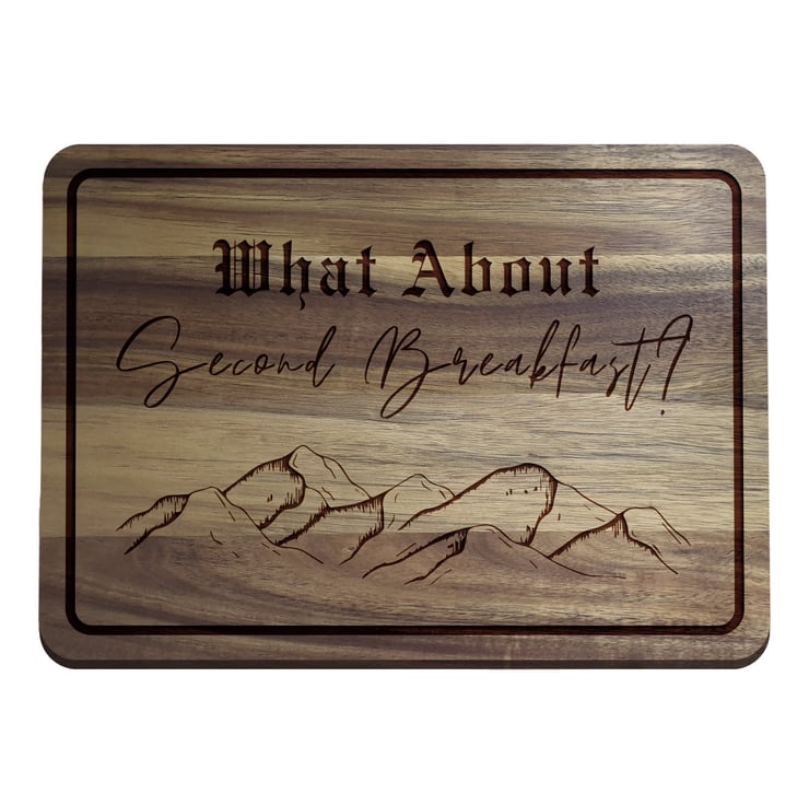 What about second breakfast? - cool personalised wooden chopping cutting board. The perfect kitchen gift for a fantasy book & film lovers . Suitable for many occasions such as Housewarming, Birthdays, Father's Day, and Christmas.