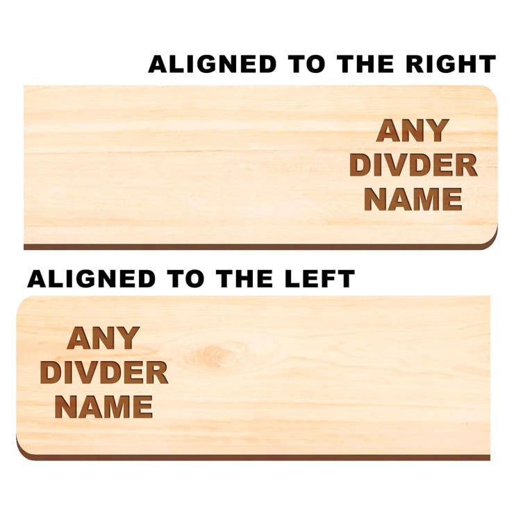 The engraving will be applied only one side of the divider. Please select if you want the engraving aligned to the left or the right (consider what side you are viewing the dividers from)