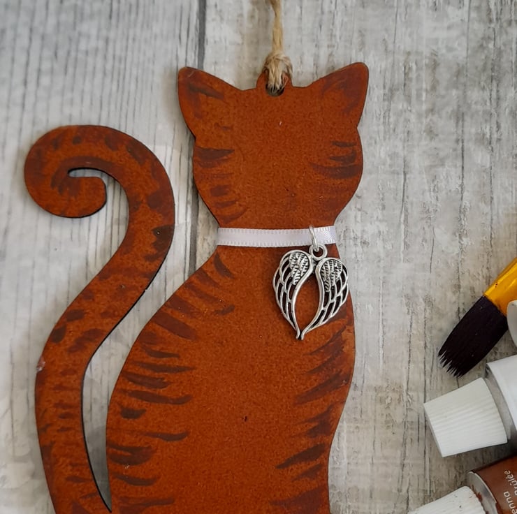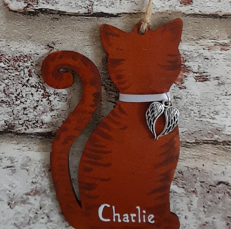 I have painted some of our favorite pets onto wood and added tibetan silver charms, paw prints, fish & angel wings, no two cats are the same. They have string attached for hanging and make lovely gifts for your pet loving friends & family. I can also handwrite the cat's name for you if you wish at no extra charge. Each cat measures approx 11 cms.