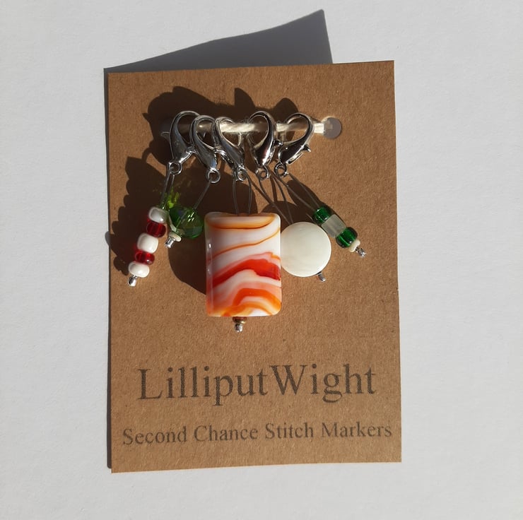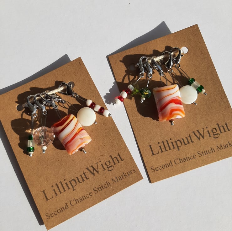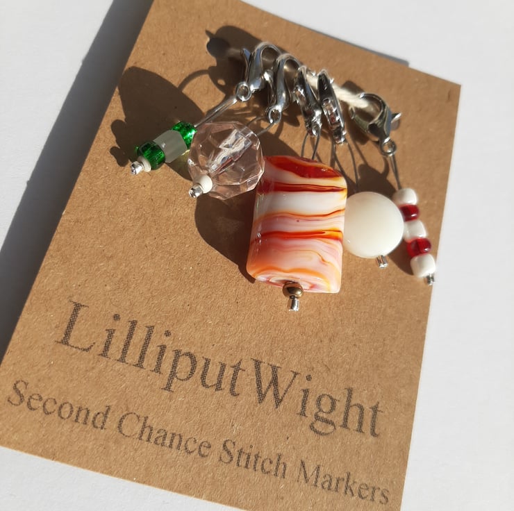 These Christmas edition stitch markers were designed around the central glass bead in red and white which reminded me of Christmas candy