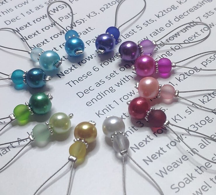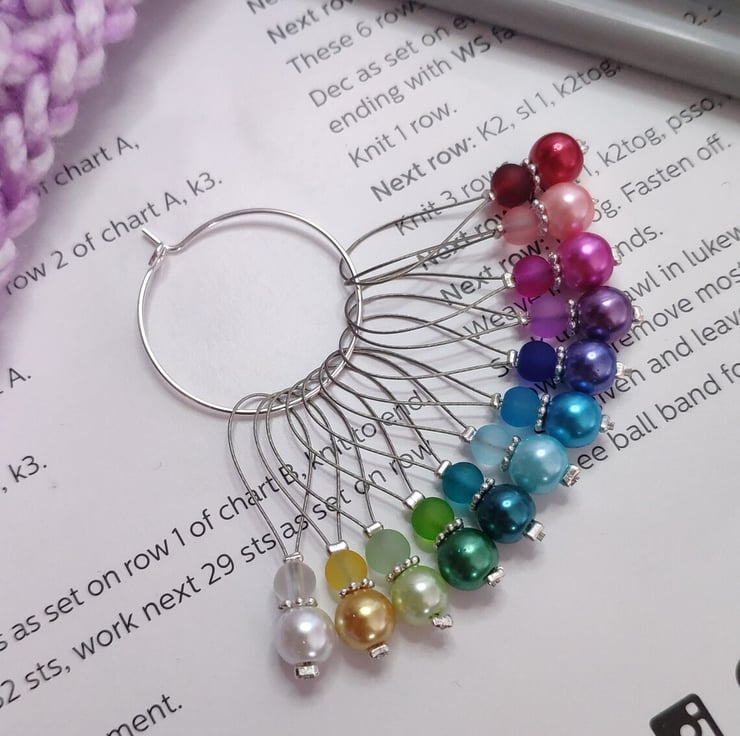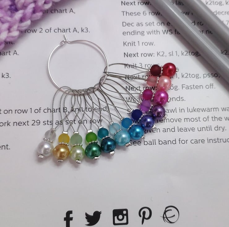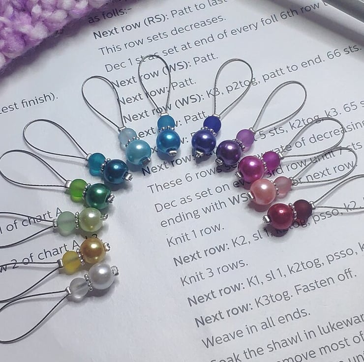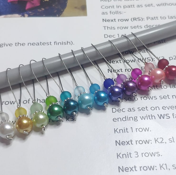 These stitch markers are sold in sets of 12, designed using strong tiger tail wire which will glide effortlessly between knitting needles.