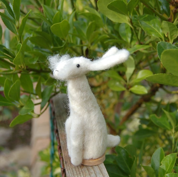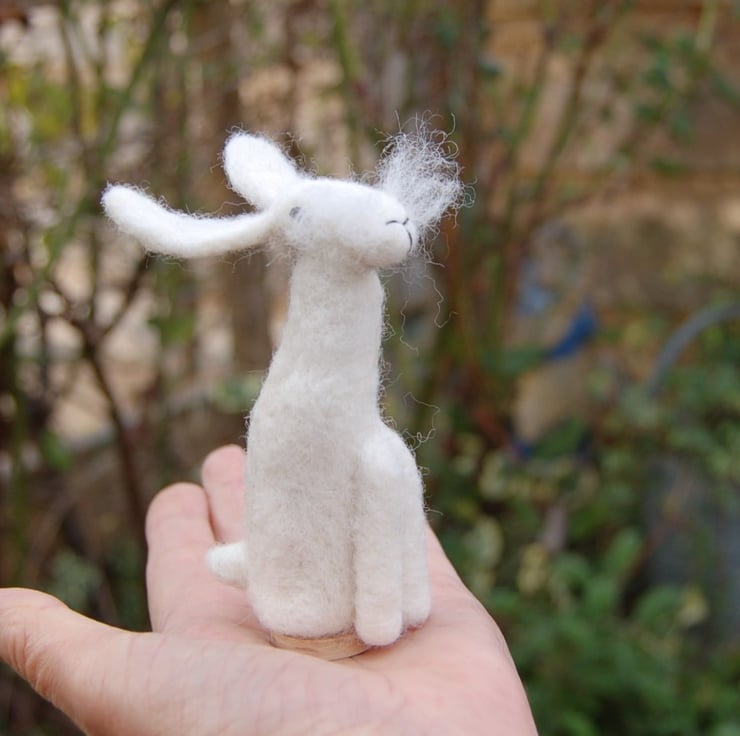 I have made this white hare using 100% wool fibres jabbed with a needle into this beautiful hare.