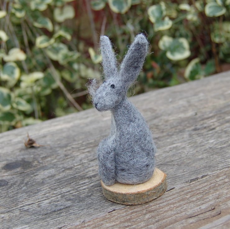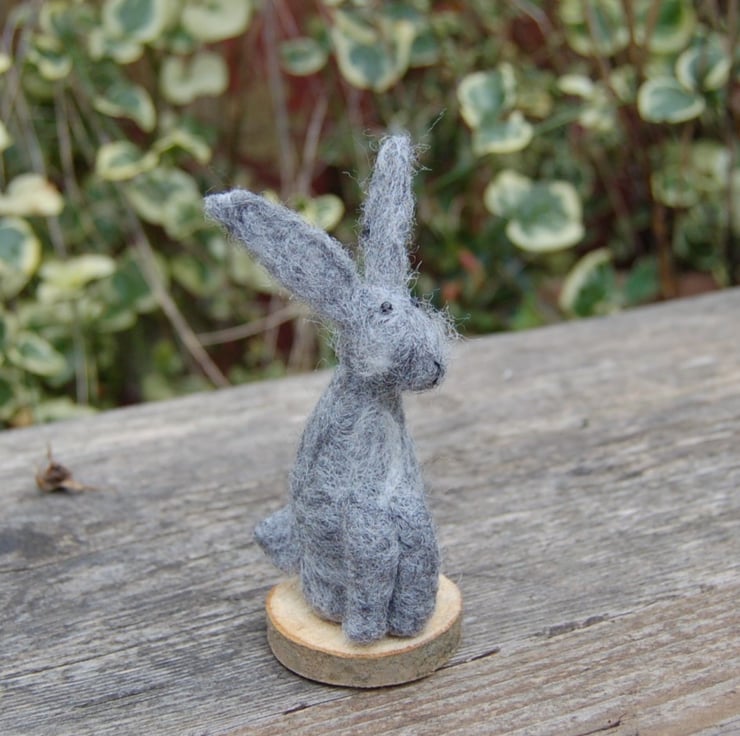 The grey hare measures 5 ins tall and is attached to a wood slice.