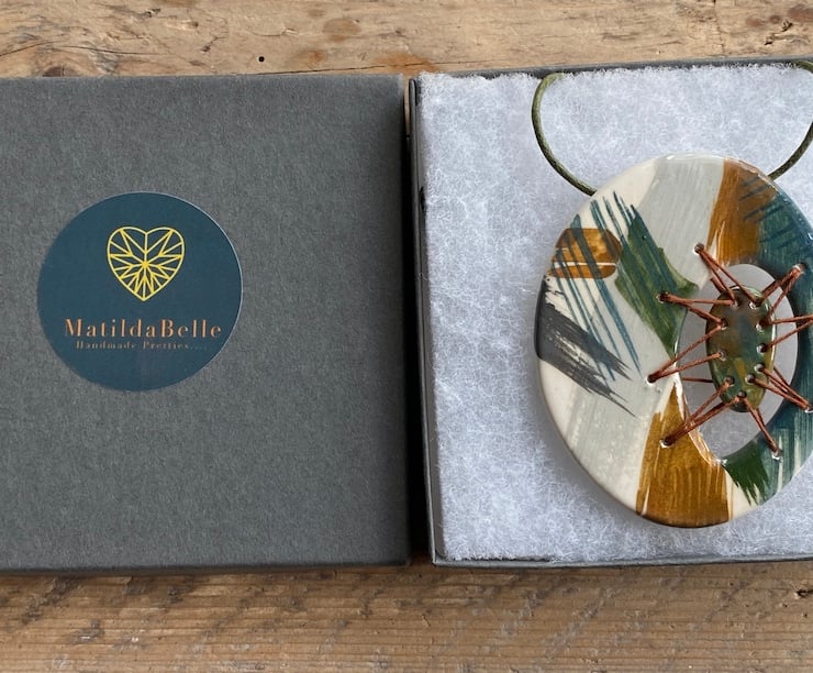 Our Handmade Ceramic Oval Pendant Necklace comes beautifully wrapped and gift boxed, ready to be sent directly to the lucky recipient.