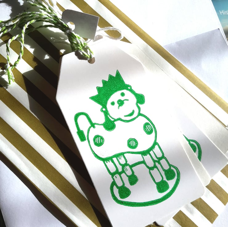 Four handprinted gift tags printed from my original lino cut.