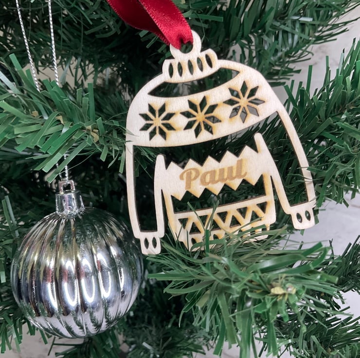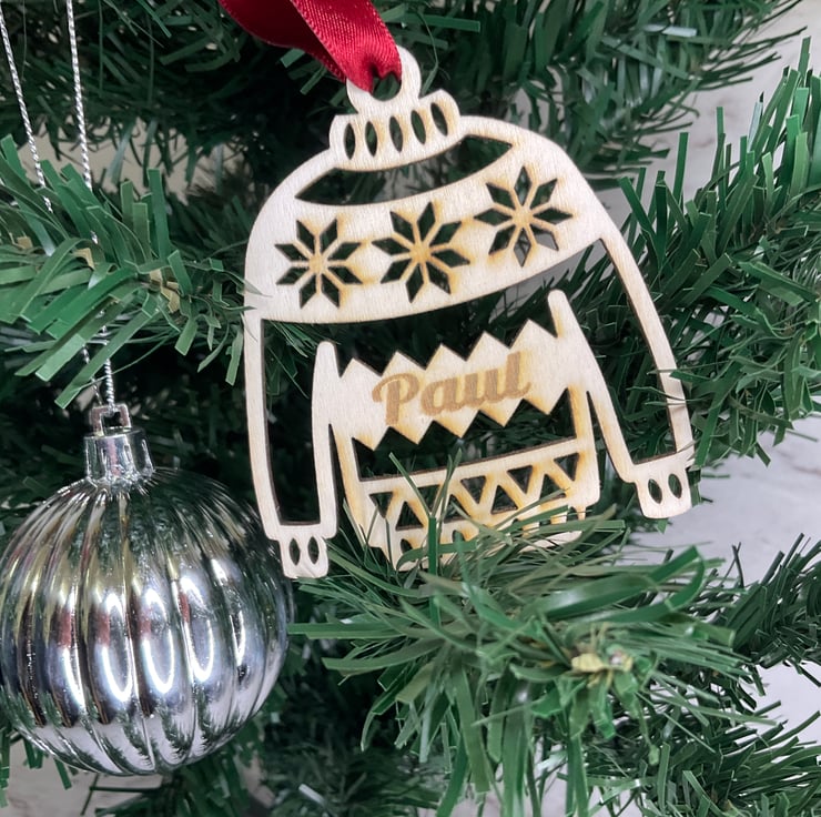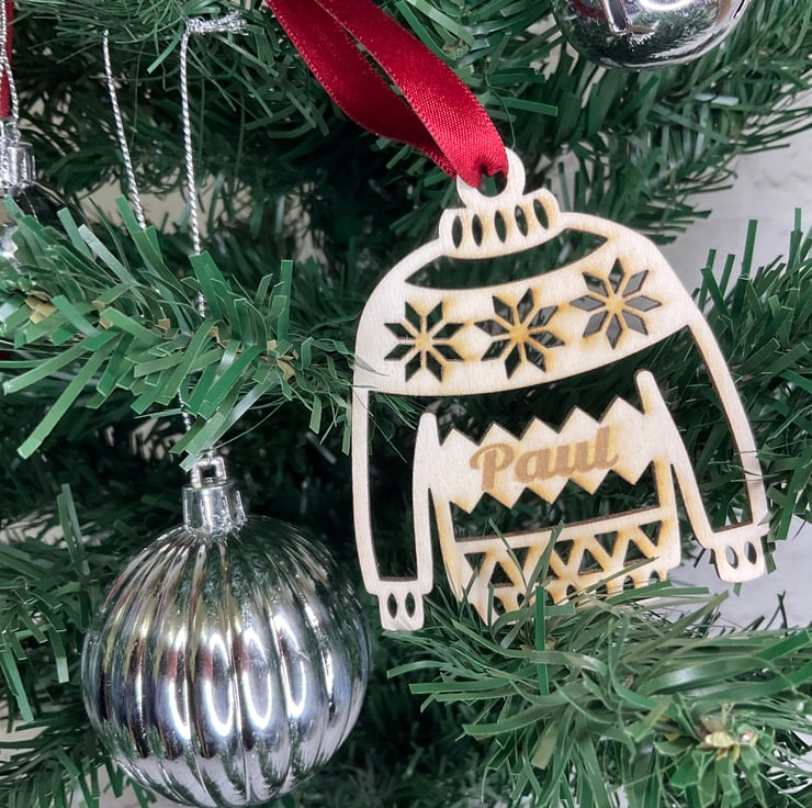 A wooden Personalised Christmas decoration, measuring 70mm across by 90mm approx high including the loop hole. Add that beautiful touch to the tree or special present this year.