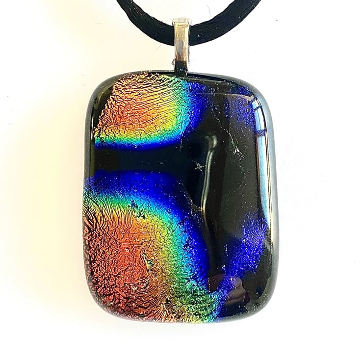 Large Rainbow Fused Dichroic Glass Pendant