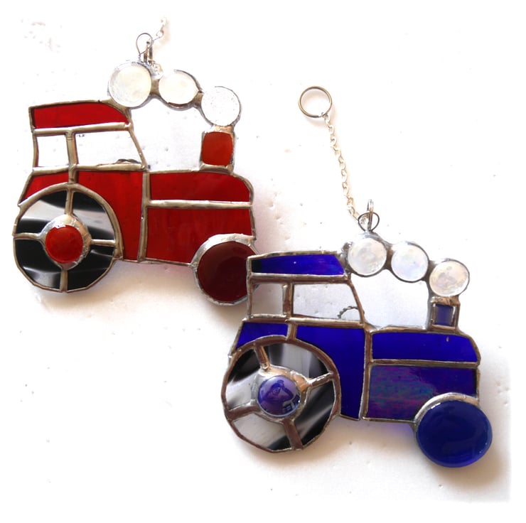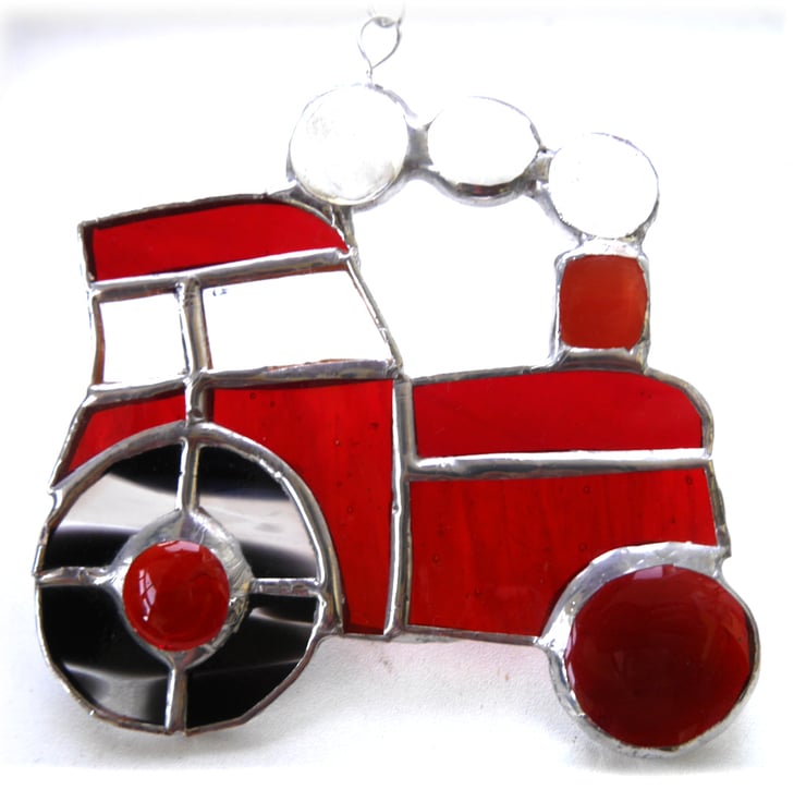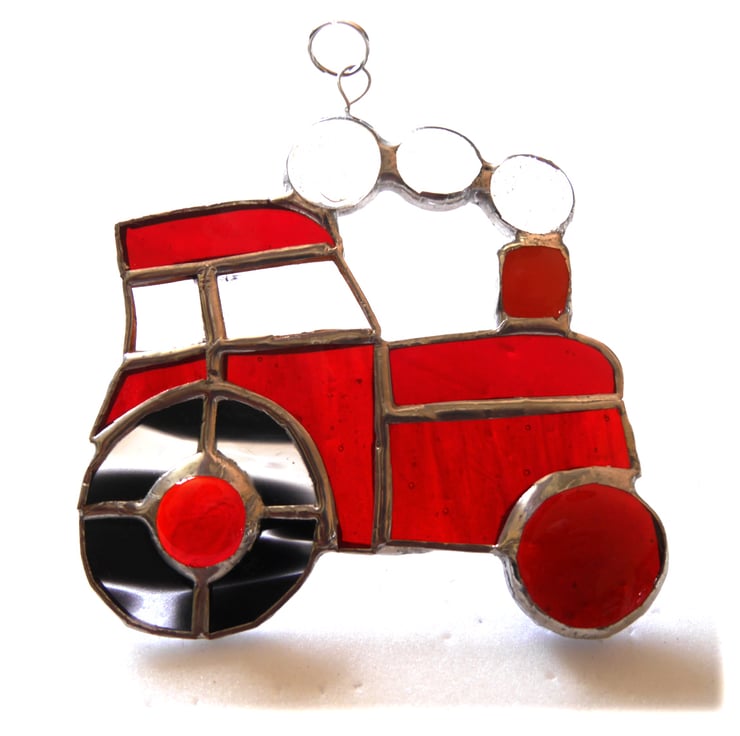 The suncatcher hangs from a little chain which is securely attached to the top of the tractor.