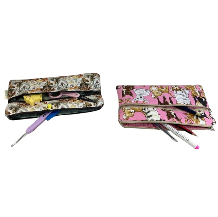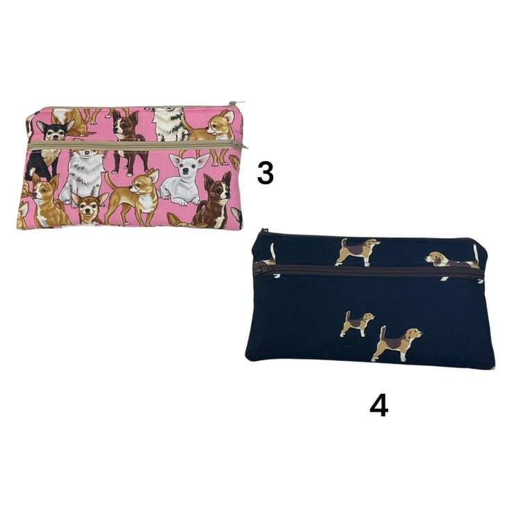 This is a handy case with many uses, a pencil case, a small cosmetics bag, to hold both phone and glasses together, a privacy pouch, storage for all those small items that drop to the bottom of your handbag or maybe a crafting pouch, It will hold needles or hooks up to 9 .To view cases click on names in drop down list, they will be identified as top or bottom of the photo.