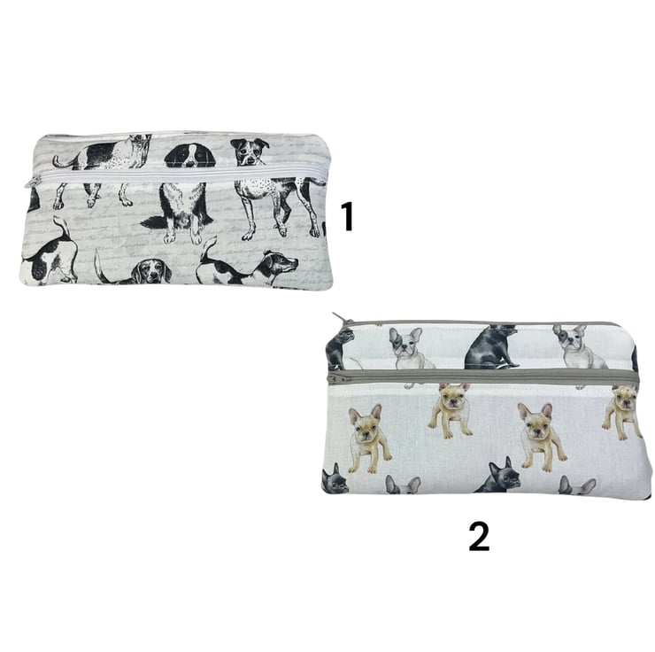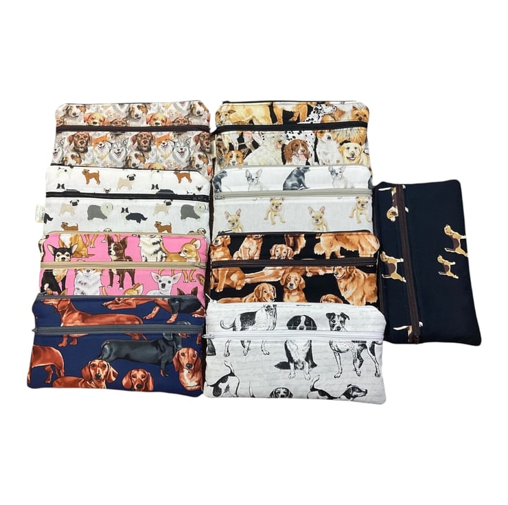I have lined the case fully in a water resistant, wipe clean silver grey fabric for the dog breeds case, whilst the chihuahua is lined in an old rose water resistant fabric. This case has a handy second pocket on the outside (this is water resistant lined too) so you can keep some items separate from the main compartment. The two nylon zips are in chocolate brown on case number 1 and in black on case 2 and the small dogs breed case. On the chihuahua they are caramel.
