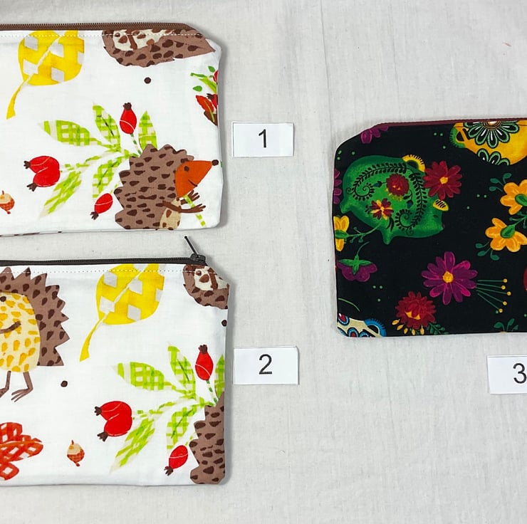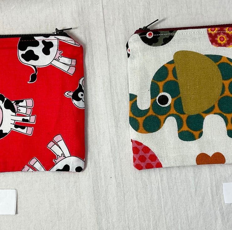 New bigger size! 16.5cm x 13cm ( 6.5 x 5 ) width by height, coin knitting notions sewing, small makeup whatever you need pouch, Oh so handy for so many uses. Made in a variety of animal print fabrics. Some pouches are entirely in heavier weight fabric, all are fully lined in it - natural, mid weight calico , so no raw edges and fraying bits! The pouches are interfaced to make them sturdier. The case securely closes with a coordinating zip (colour may vary). Cases are named, click on name in drop down list to view the photo.