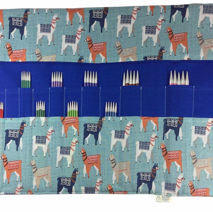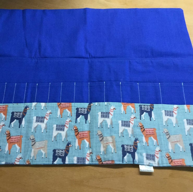 The case and lower needle pocket are made in the llama fabric,and I have chosen to line the case in a Royal blue linen look heavier weight cotton fabric, that Coordinates nicely, This is also used for the upper needle pocket.