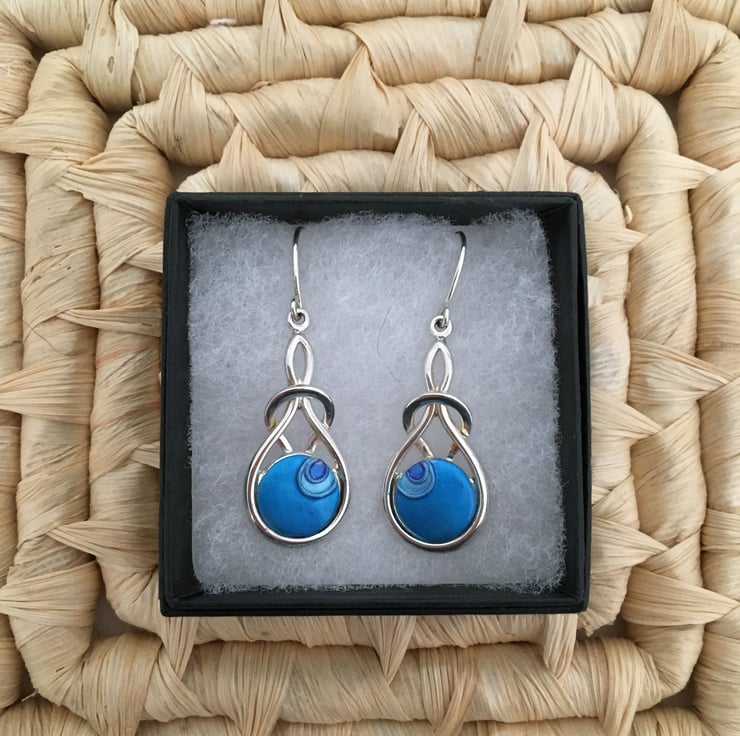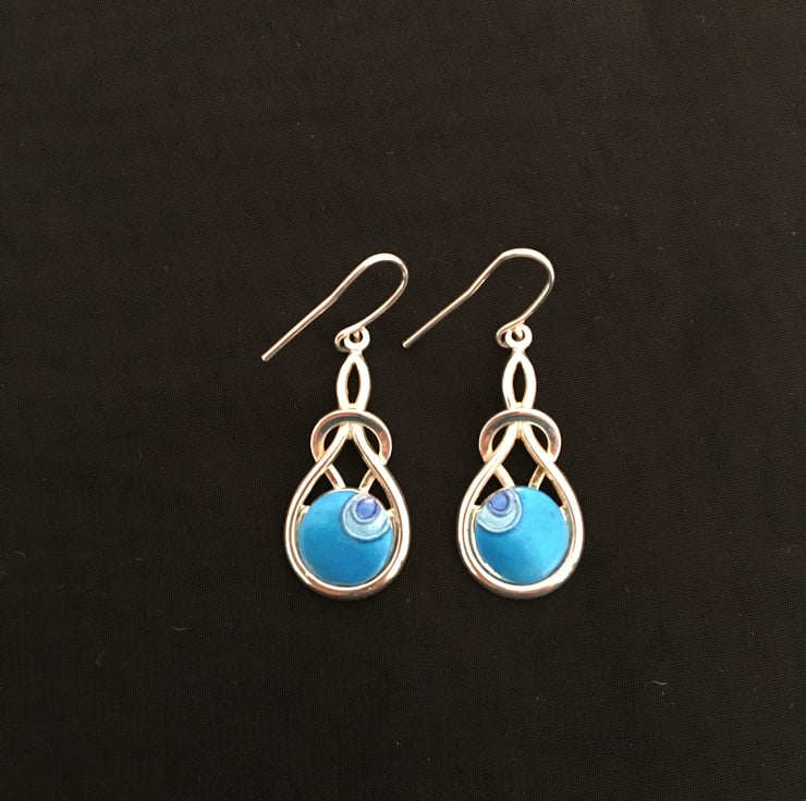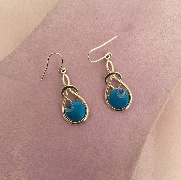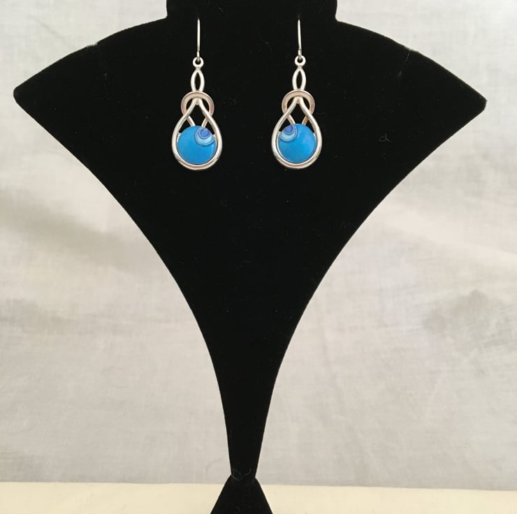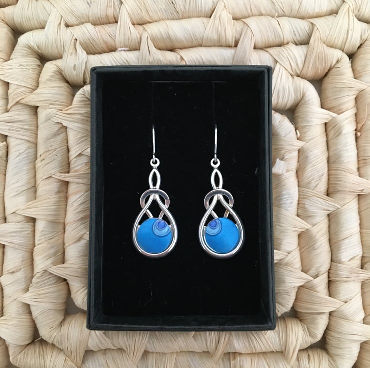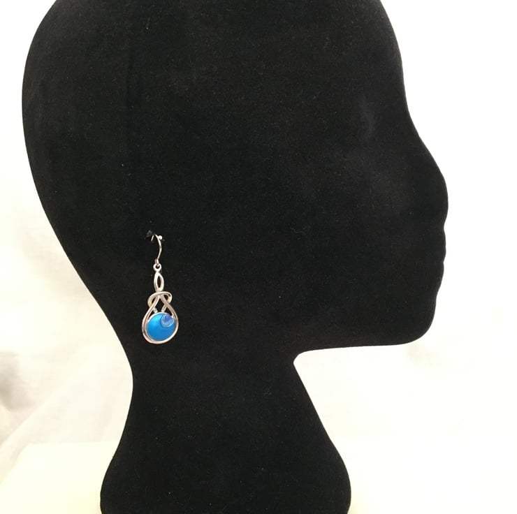 Handcrafted bold blue centred earrings in quality silver plated setting