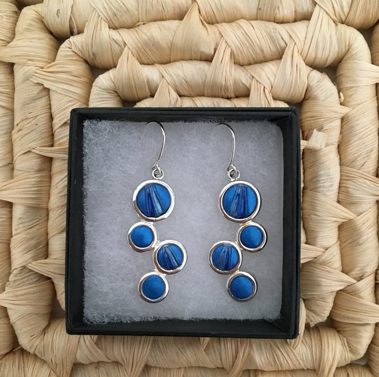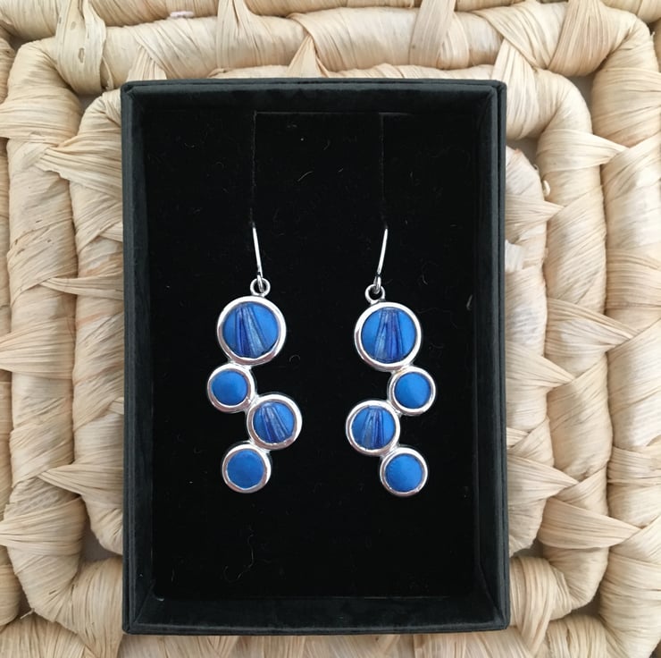 Handcrafted bold blue earrings in quality silver plated setting