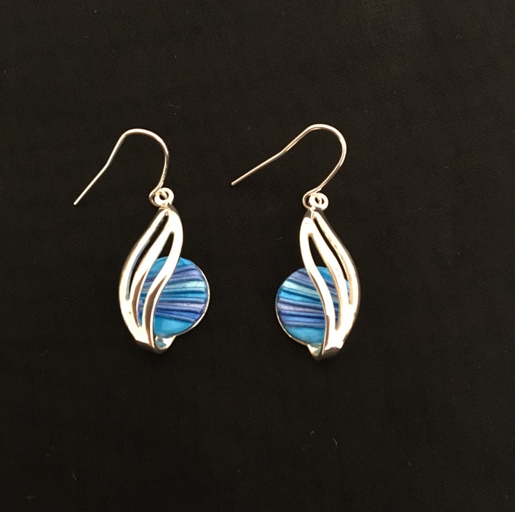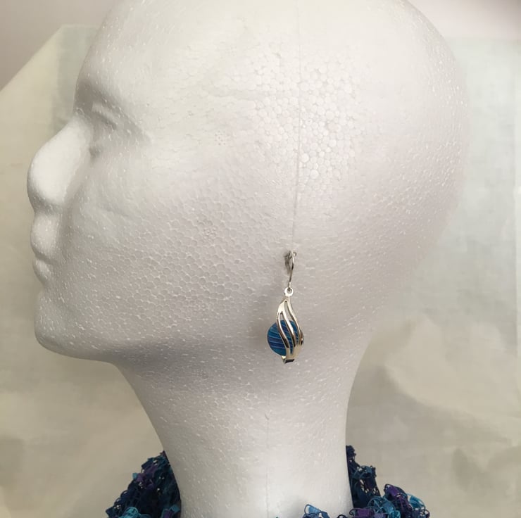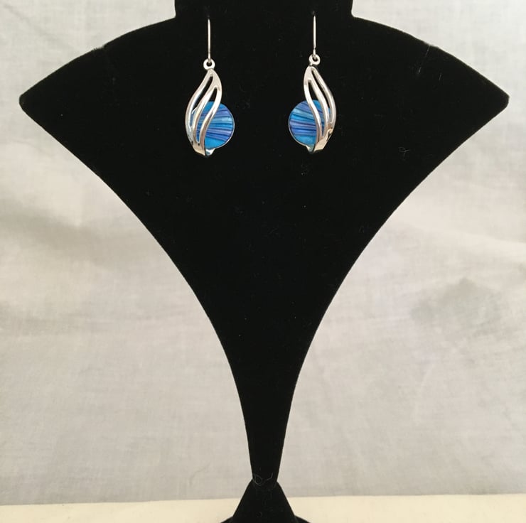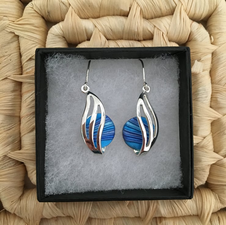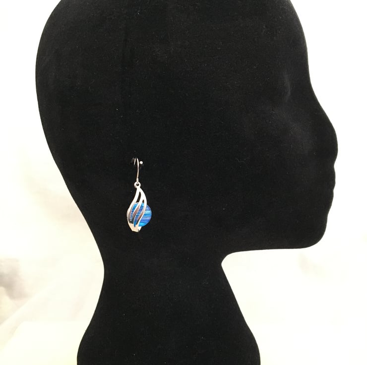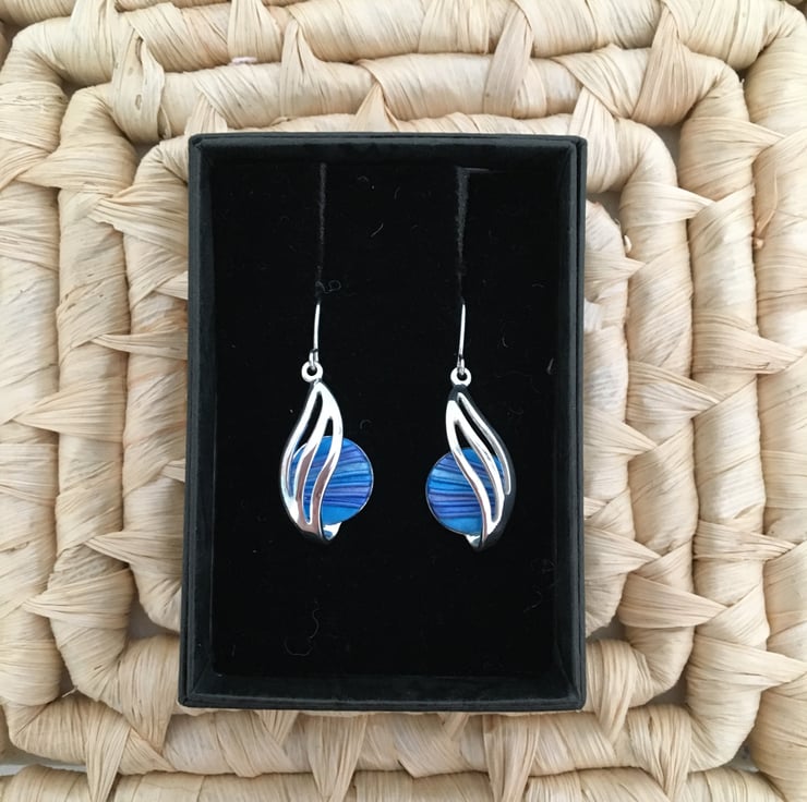Handcrafted bold blue centred earrings in quality silver plated setting
