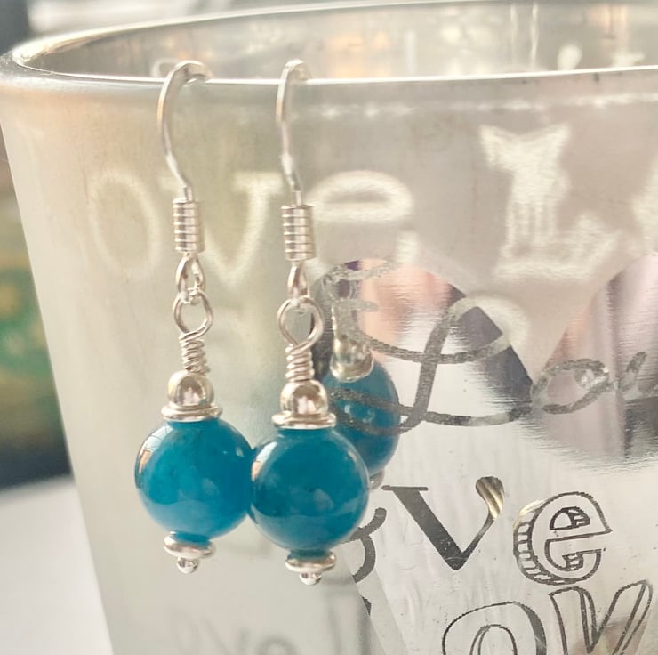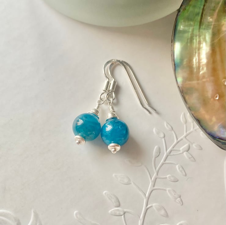Lovely handmade Apatite and sterling silver earrings. I have finished the earrings with 925 sterling silver shepherd hooks. Beautiful dainty earrings that will be perfect as a Birthday, Anniversary or Christmas gift.