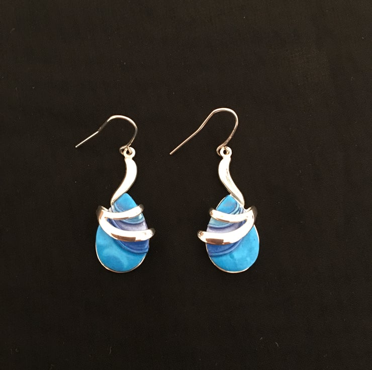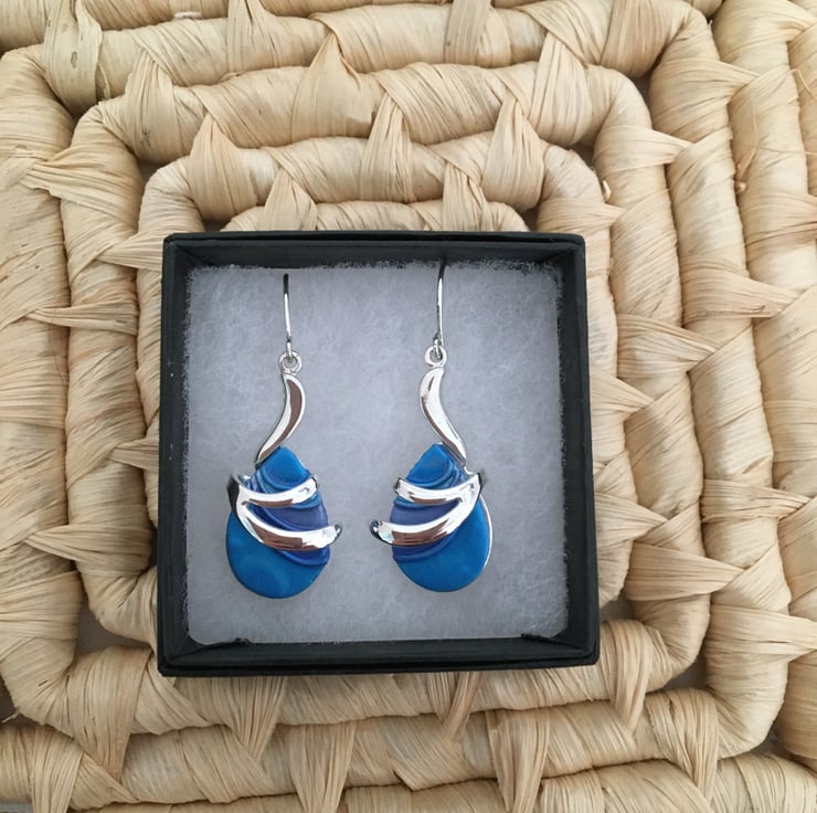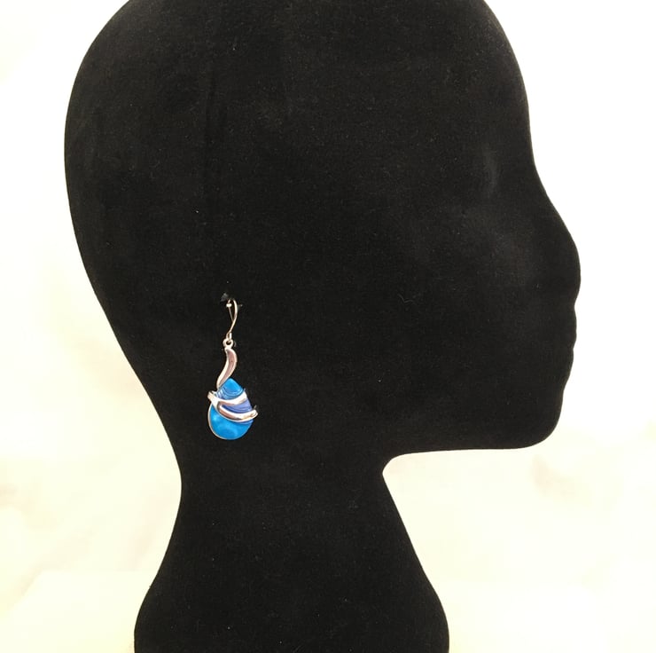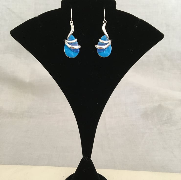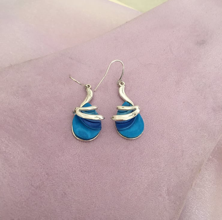 Vibrant Blue Teardrop Wave Earrings
