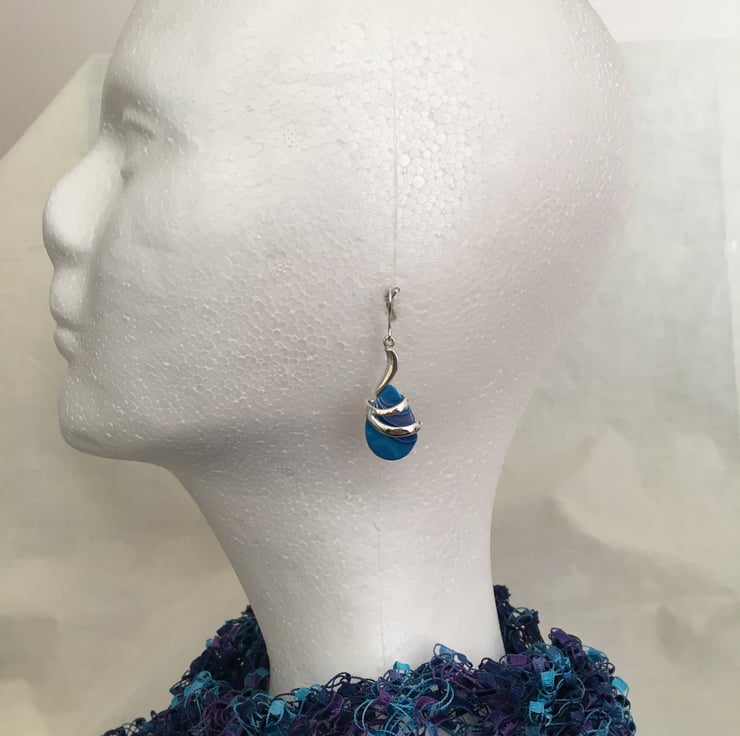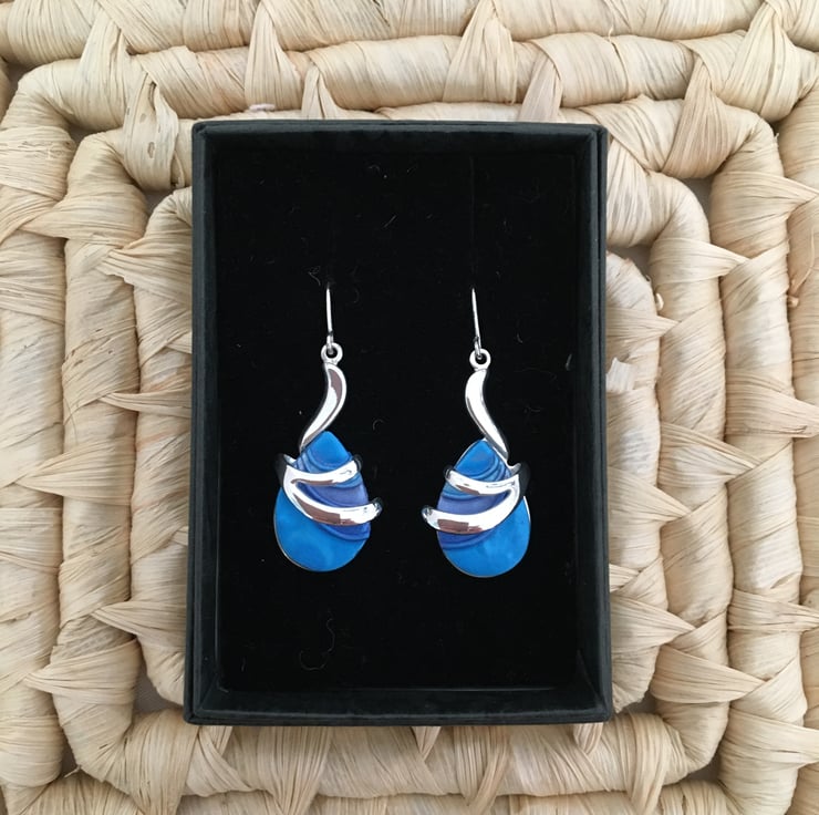Handcrafted bold blue centred earrings in quality silver plated setting