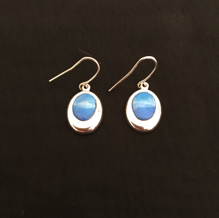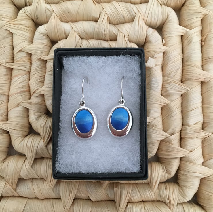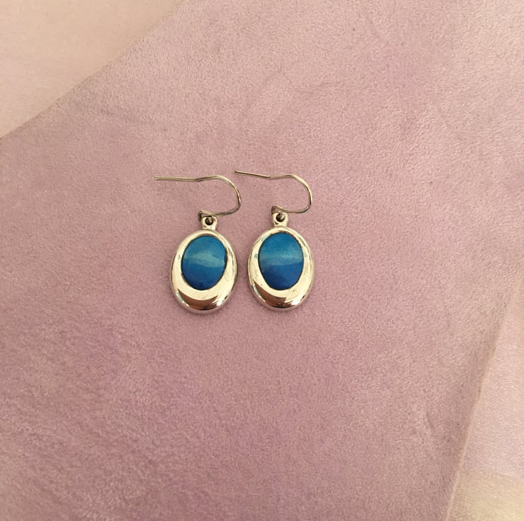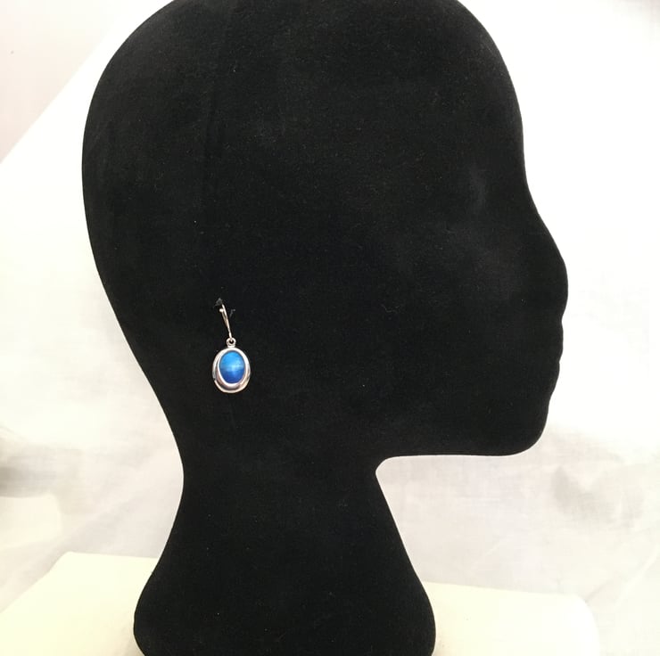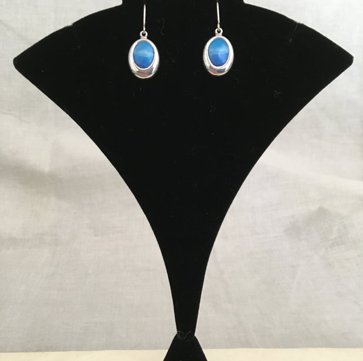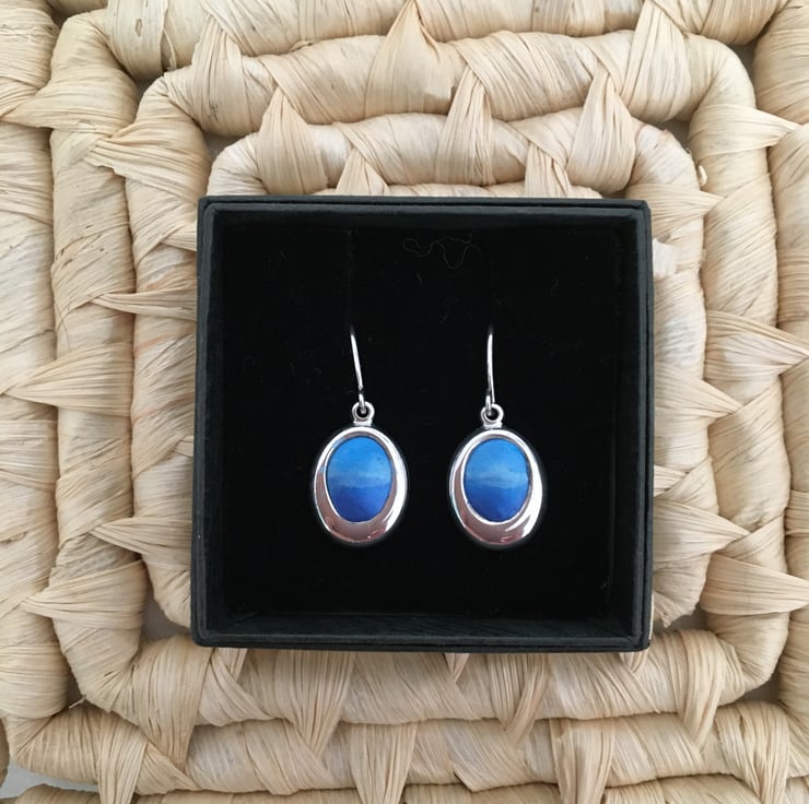 Handcrafted bold blue centred earrings in quality silver plated setting