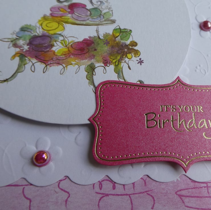 The design has been completed with a fushia pink message with the words 'It's Your Birthday' foiled in gold.