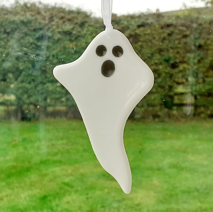 Fused glass hanging ghost, ideal home/garden decoration for Halloween parties.