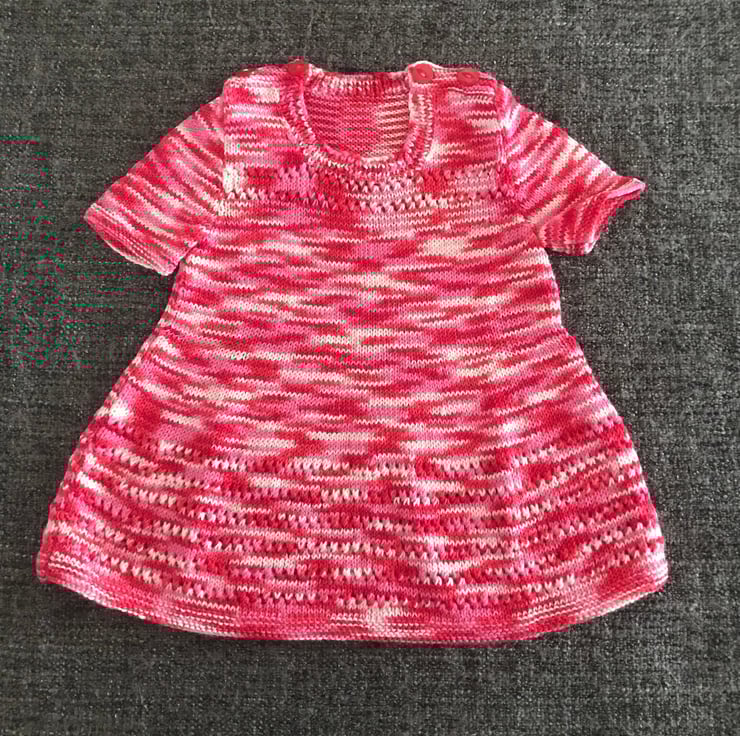 The yarn used was 75% Bamboo 25% Nylon, which means the dress can be machine washed at 30 degrees and can also be tumble dried.