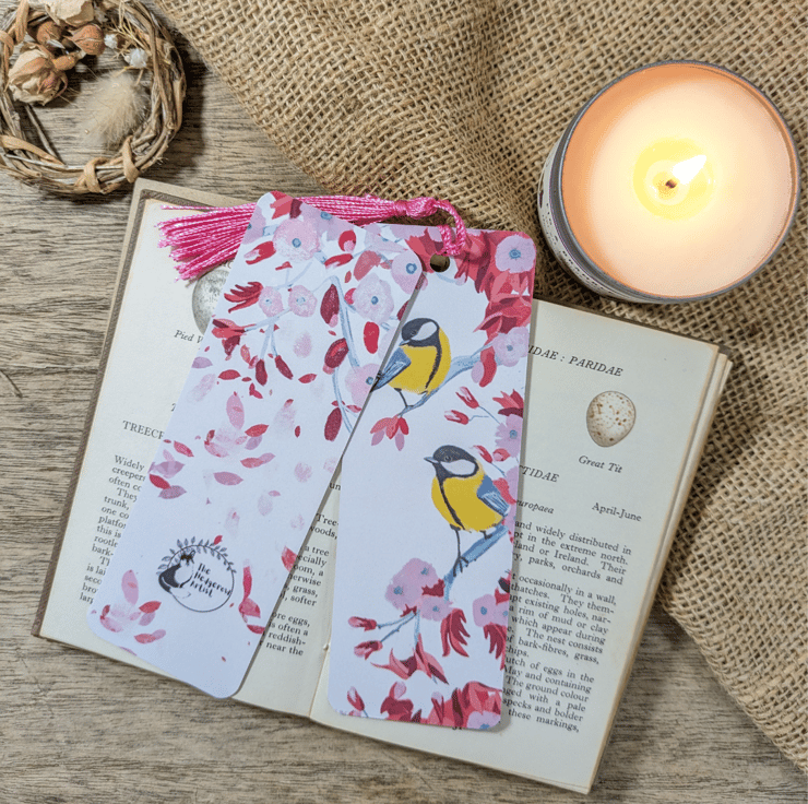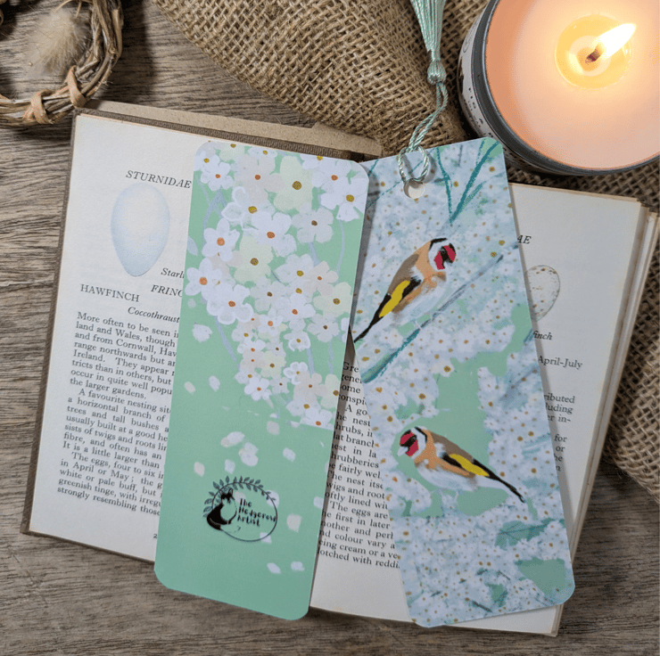 Beautiful vibrant bookmarks with design on both sides using some the most popular artwork from The Hedgerow Artist.