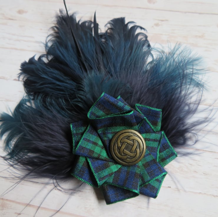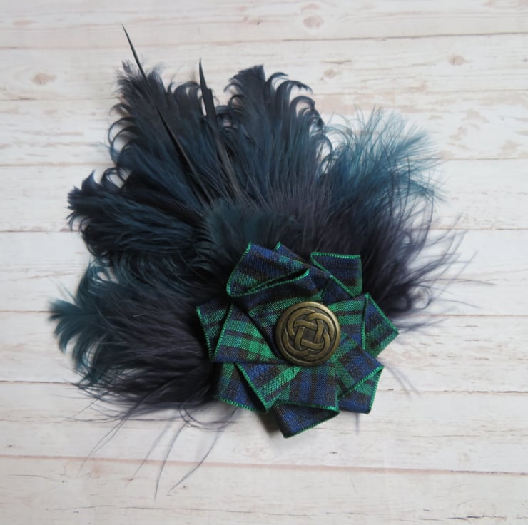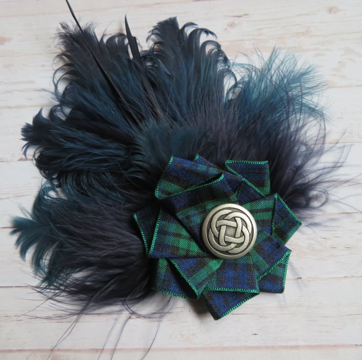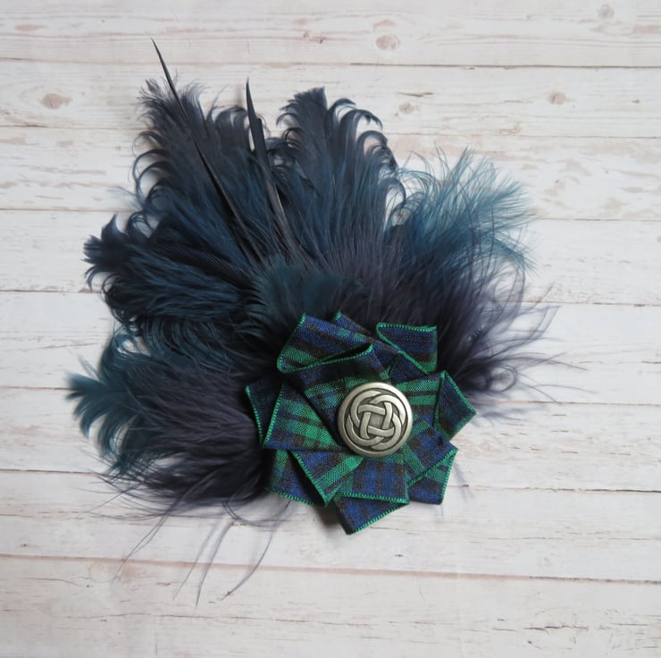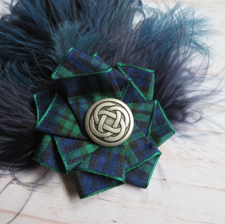 Finished with a Blackwatch tartan ribbon ruffle with a choice of a silver or brass Celtic button, plain with crystals also available on a separate listing.