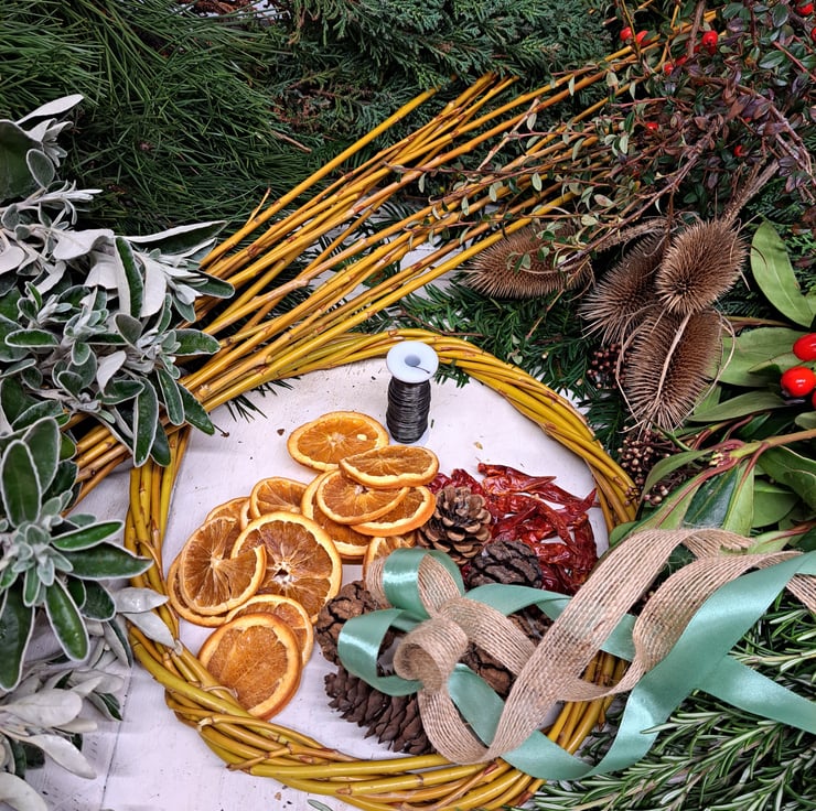 Decorations: Once your base is woven, it's your canvas and you can let your creativity flow. Decorate with natural elements provided including pinecones, dried orange slices and teasels and add personalise it by adding your own Baubles and Bows! Your creation will become a work of art, inspired by the natural beauty of Nettlebed Woodland.