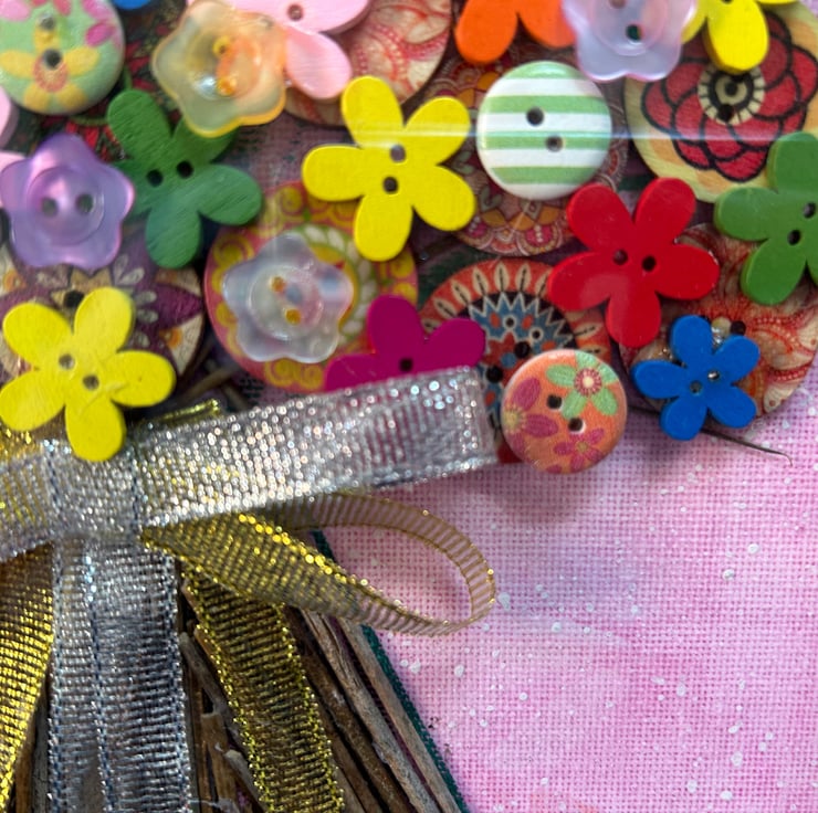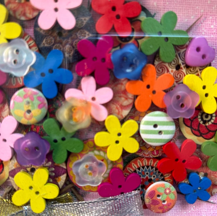 Buttons are on a hand painted canvas