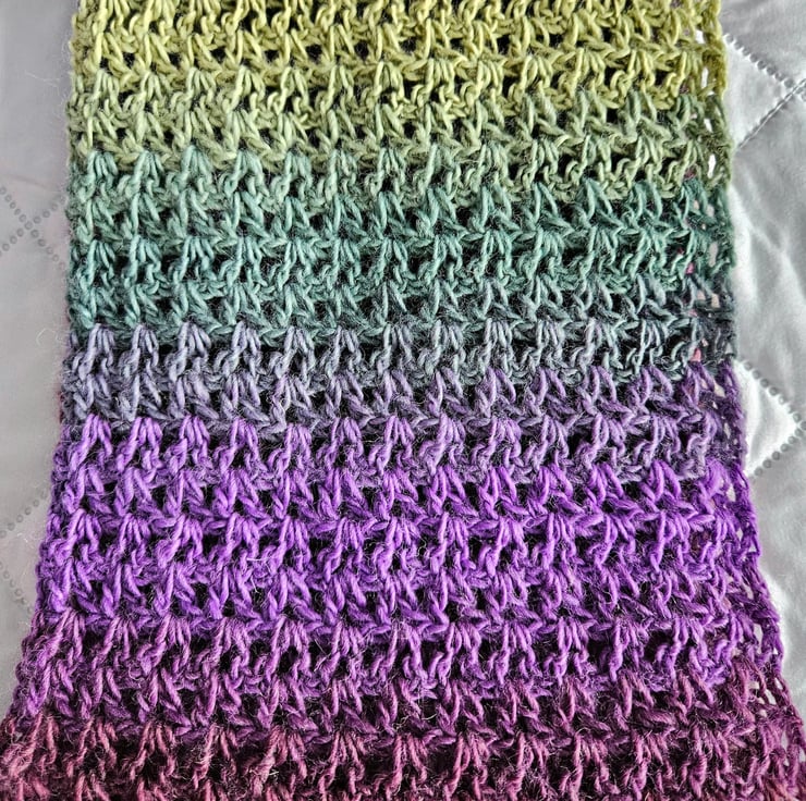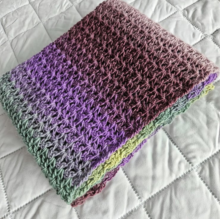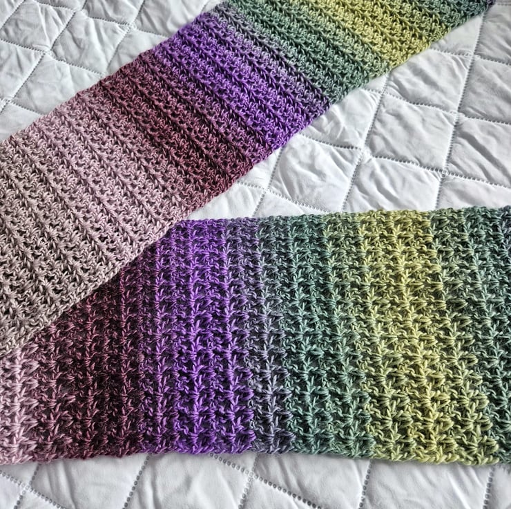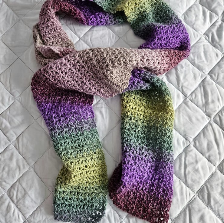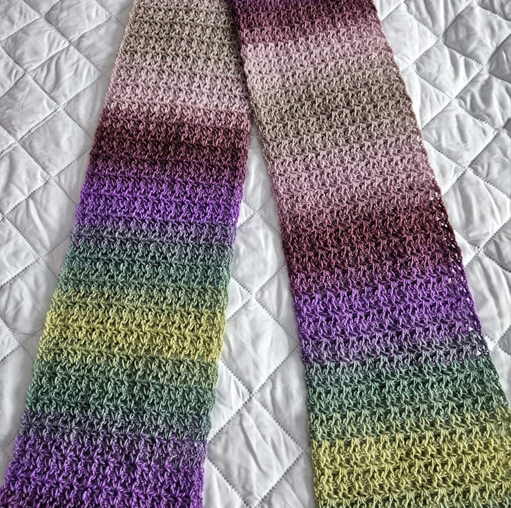 This beautiful scarf reminds me of fields of heather! It was made with a gorgeous combination yarn that is 90% premium acrylic and 10% wool which makes it super snuggly and warm. It is machine washable at 30 Degrees.