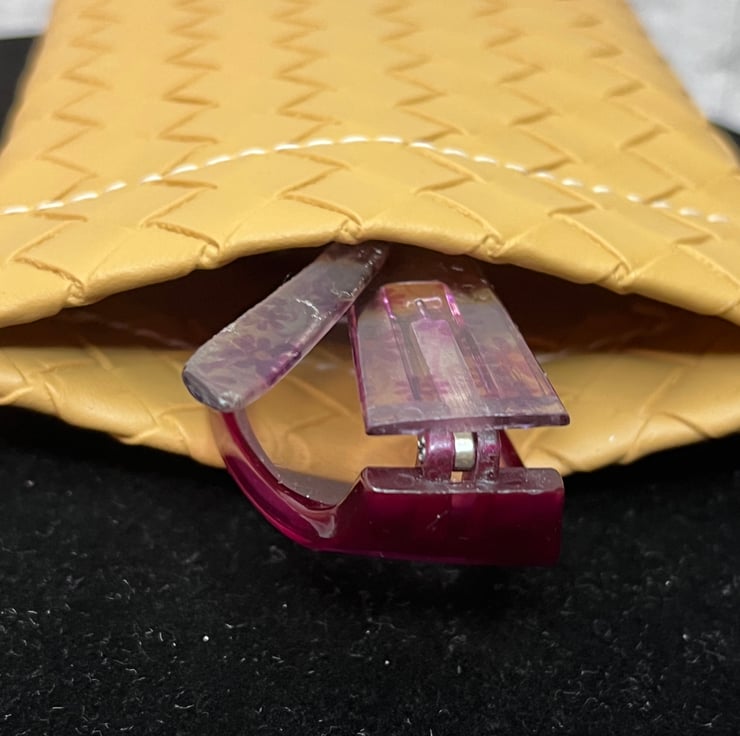 Safe and secure snap closure glasses case in faux leather vinyl. Easily accessible but your safe in the knowledge that your glasses won't fall out. Generous size, fits most glasses including sunglasses.