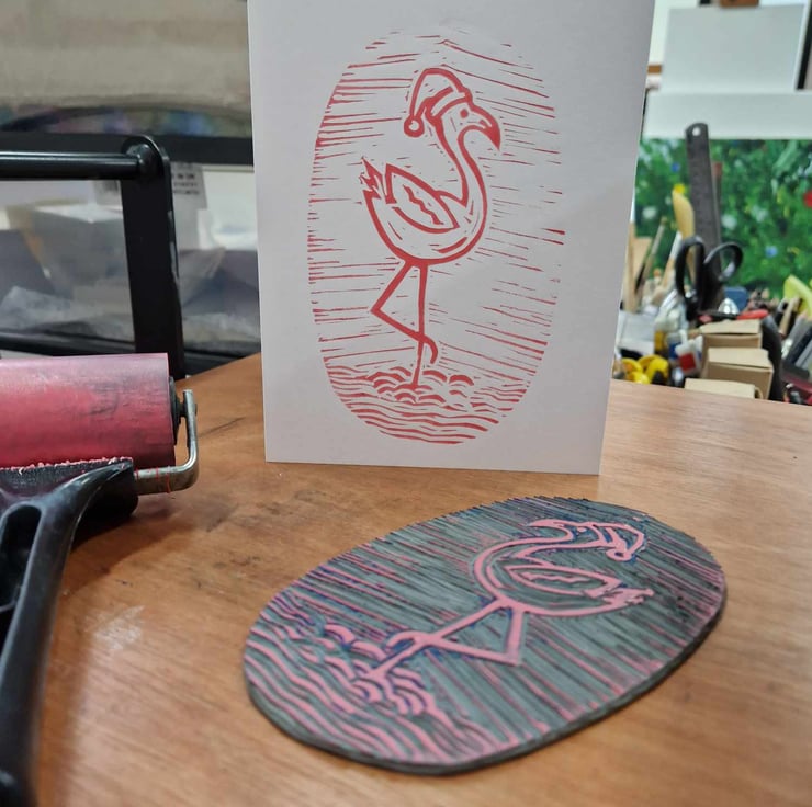 I originally made the flamingo print for my sister as a present, but then added a hat for Christmas cards!