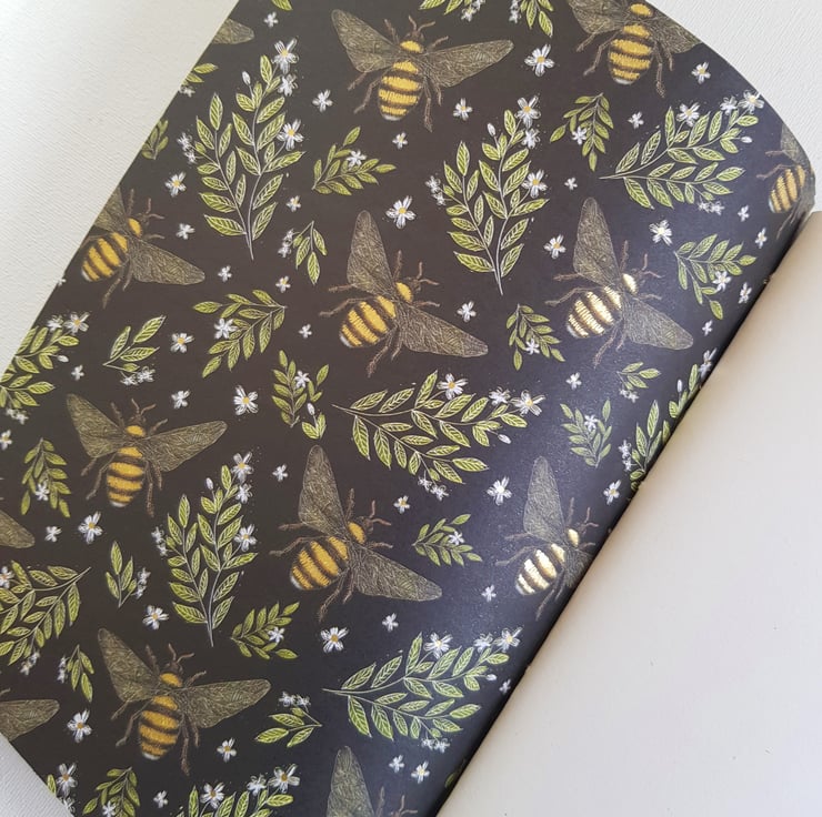 The Bee Paper lining this Journal is beautiful with a touch of gold. Great gift for a Bee Lover, Apiarist or Nature Lover.