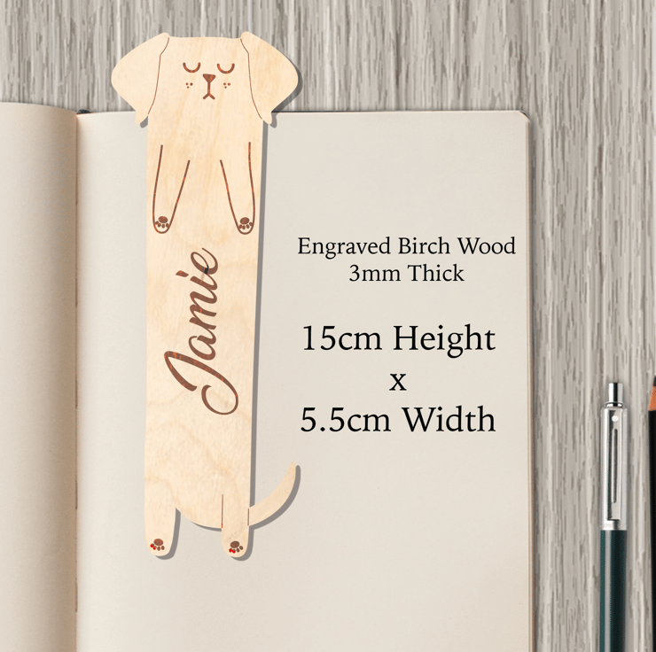 Personalised Dog Bookmark. These personalised wooden bookmarks are a great Birthday, Anniversary, or Christmas gift.
