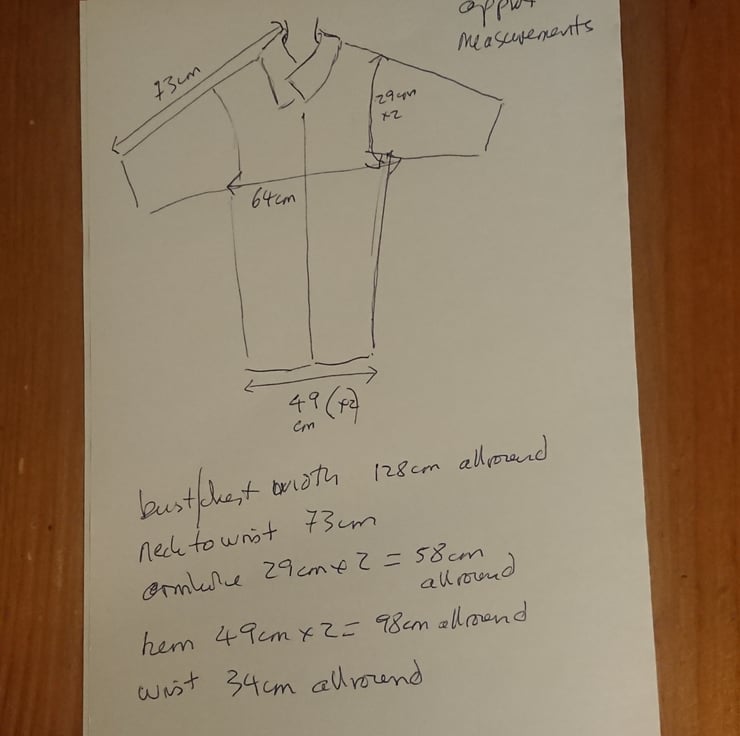 sleeve: side of neck, along shoulder, down arm to wrist: 73 cm