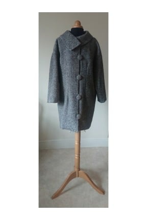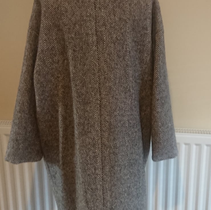 "Oversize" style pure wool coat with a versatile fit, approximately UK size 8 (84 cm bust) up to about a UK size 20 (110 cm bust).