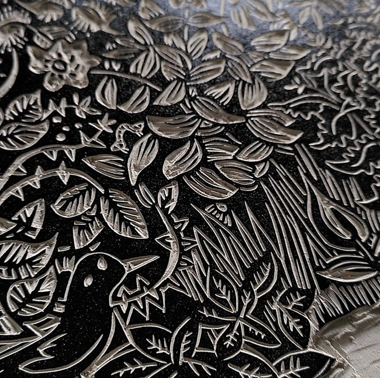 This is a hand burnished lino print on Somerset Satin Paper - the lino block has been carved from my original drawing - it is a limited edition of 100 and each is numbered, signed and titled on the front.