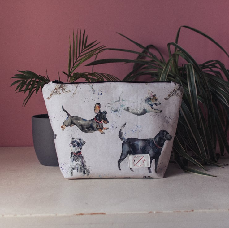 Fancy yourself a super cute wash bag with a naughty labrador, terriers, spaniels or dachshunds? Then you found the perfect one! A simple white based fabric with the dashing dogs evenly spaced makes an essential item super cute.