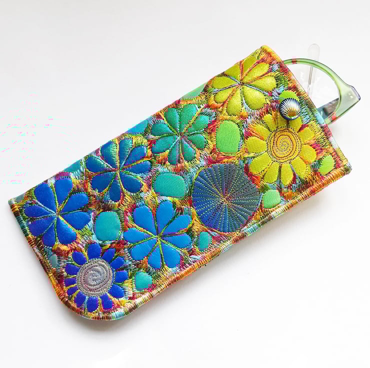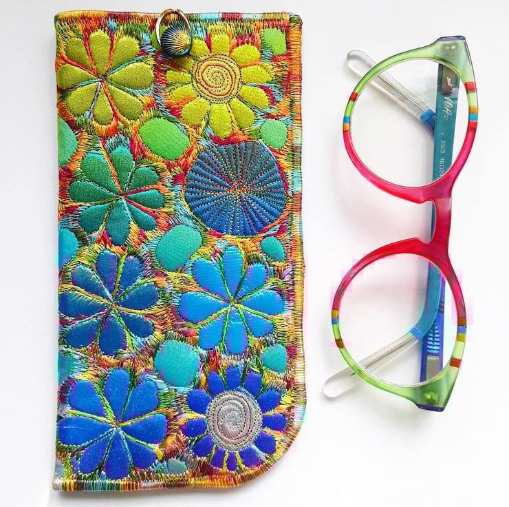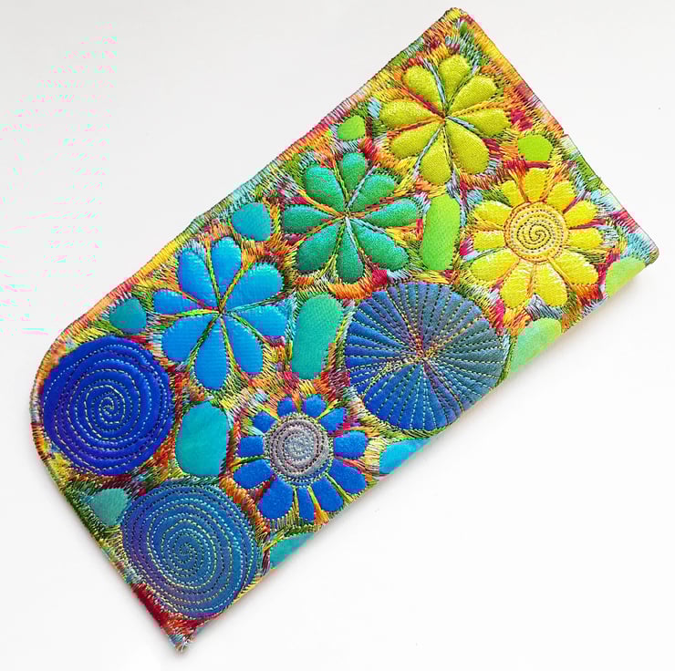 Made from layers of fabric including hand dyed Egyptian cotton an d silk fabrics using the free machine embroidery.