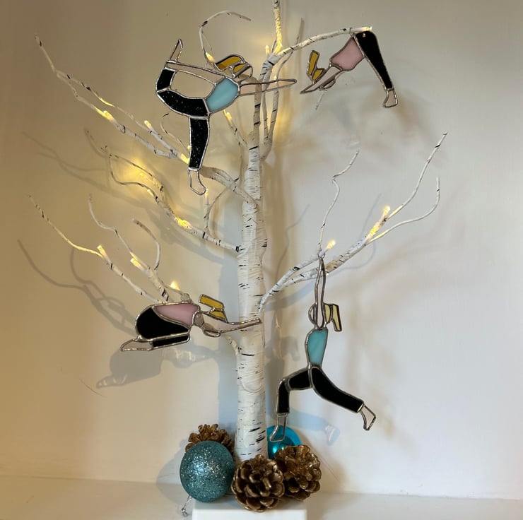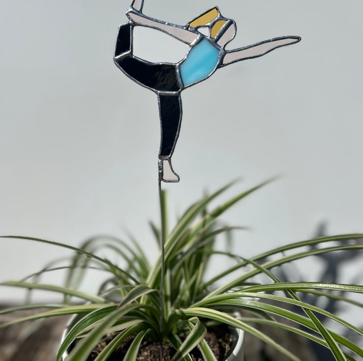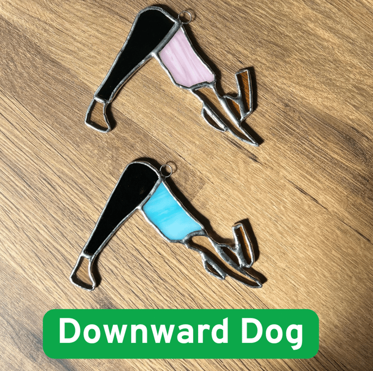 As an enthusiast of Yoga and Pilates, I enjoyed representing my best poses in my favourite medium of Tiffany style stained glass. I have these dotted all over my workshop to remind me of my wellness hours.