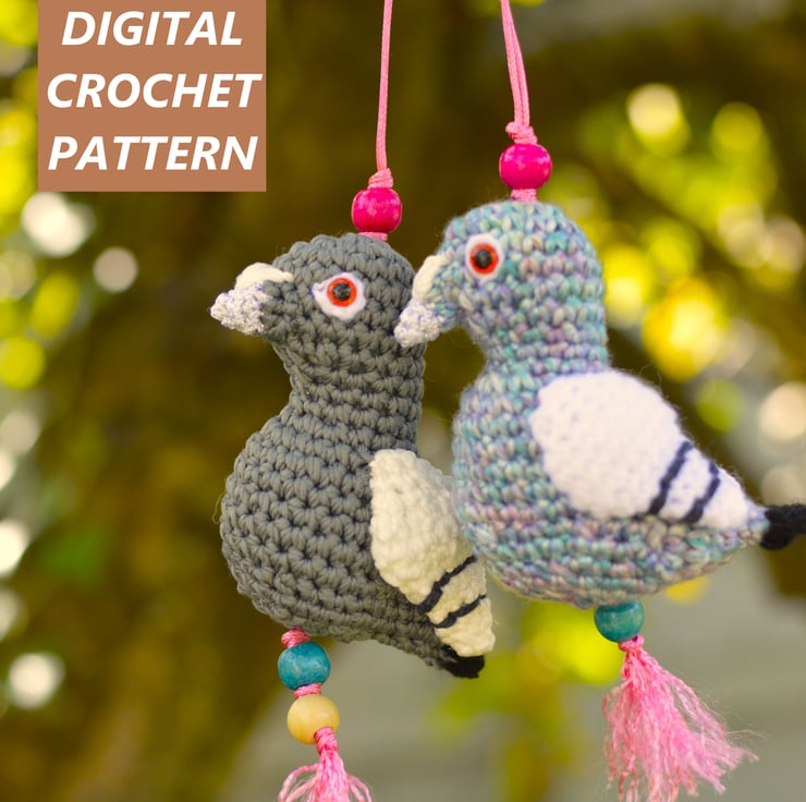Pigeon Crochet Bag or Key Ring Ornament PDF DIGITAL PATTERN