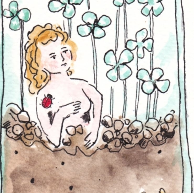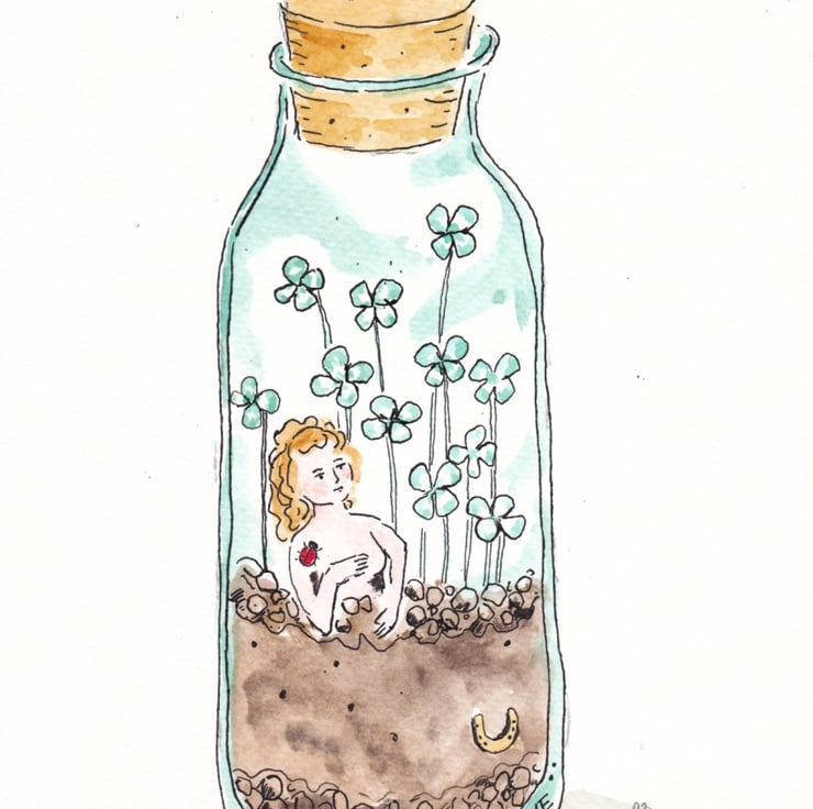 Good Fortune in a Terrarium - watercolour and ink drawing