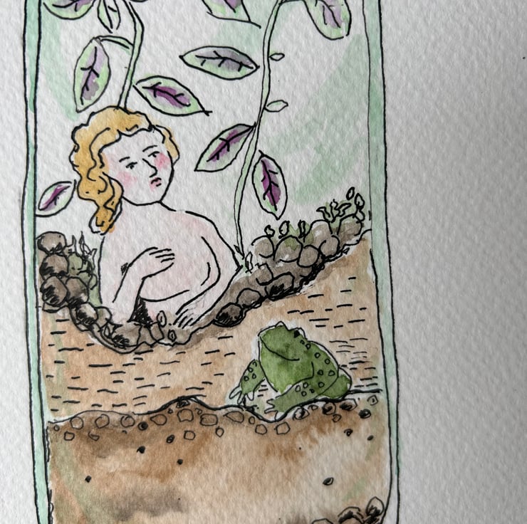 This artwork was created for Inktober 2023. I was inspired to do my drawings all contained in terrariums. I love making terrariums and making little contained worlds. They have their own micro climate and you can include any kind of ornament to create quirky landscapes.