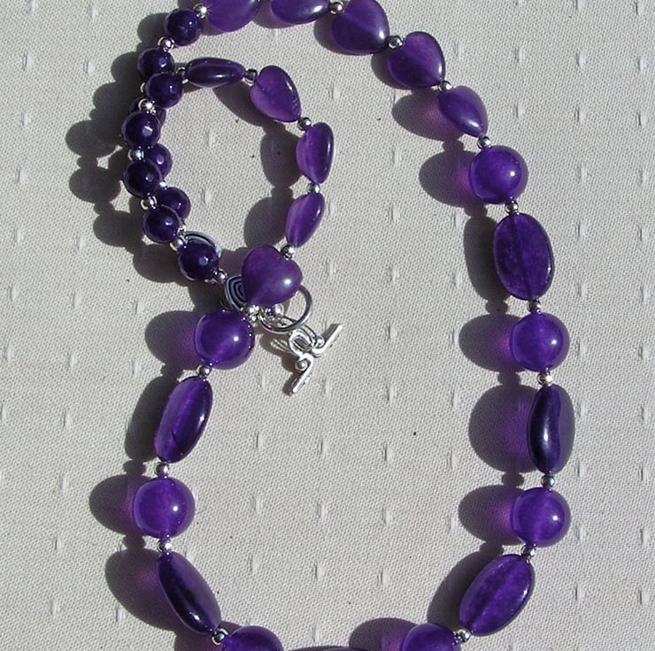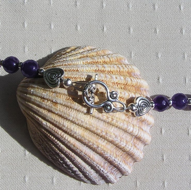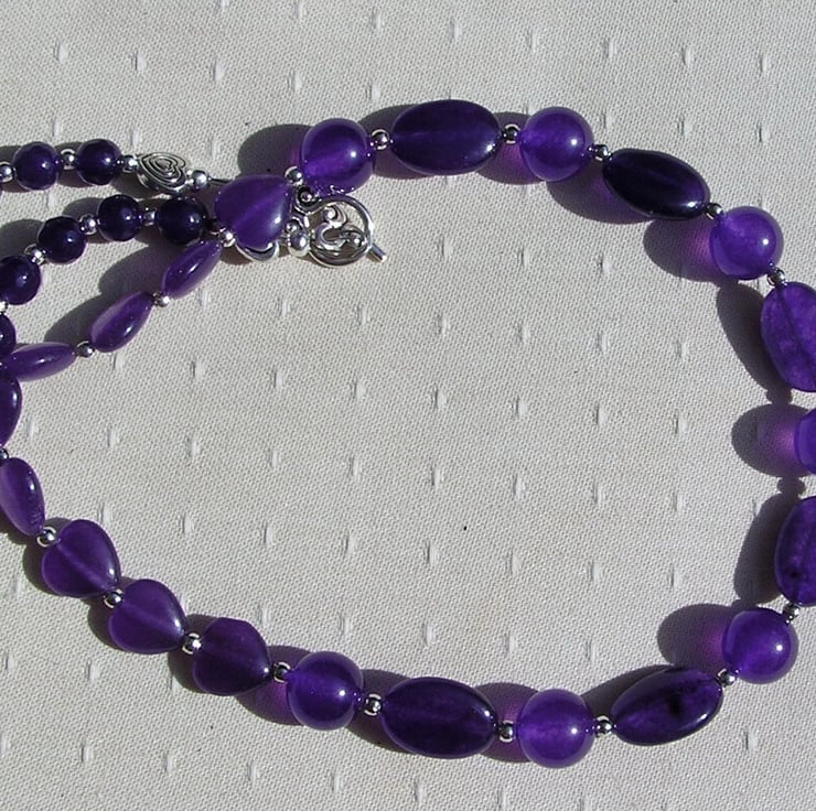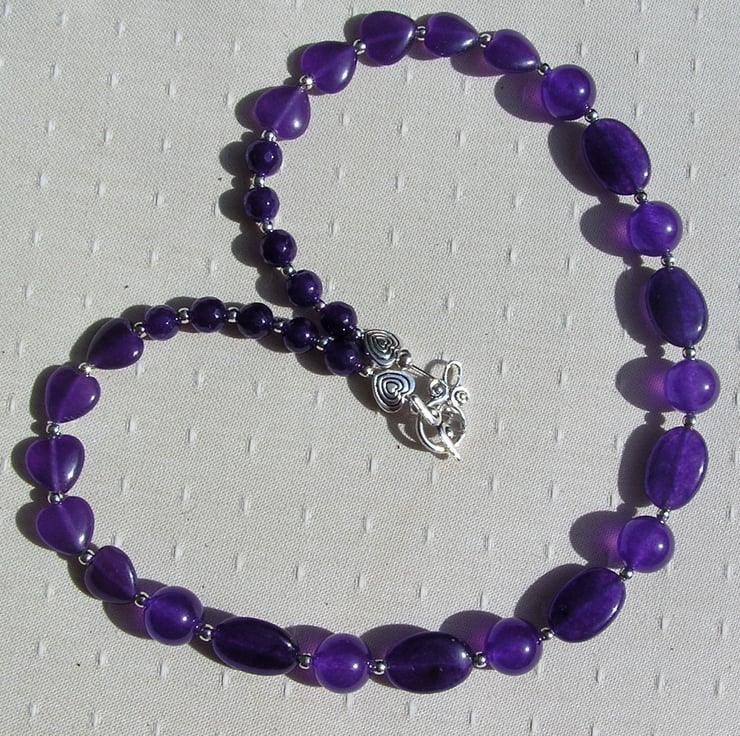 This Stunning Necklace is made wholly from Purple Amethyst - Chunky Round Beads, Puffy Ovals, Hearts and smaller Faceted round beads all alternated with Glistening Crystal studded spacers - a Celebration of Purple that will look stunning either worn casually or with something more Elegant for a Special Evening out