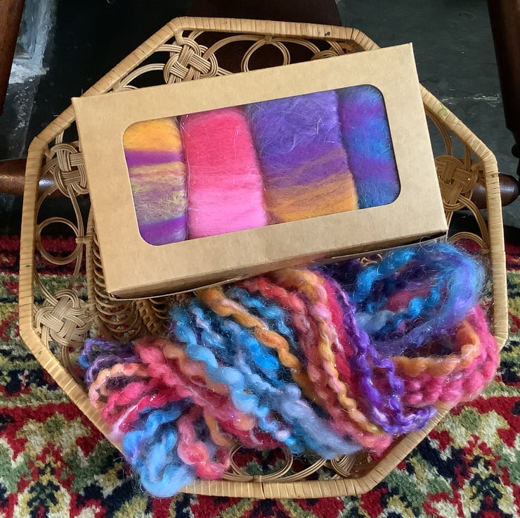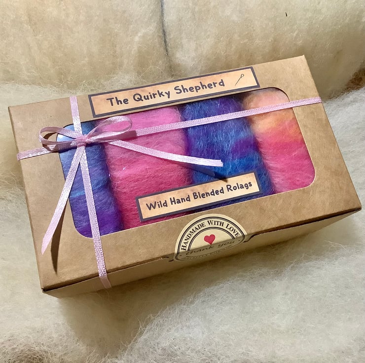 The rolags weigh approx. 70g in total and are provided in a presentation box - a perfect gift for the fibre artist.